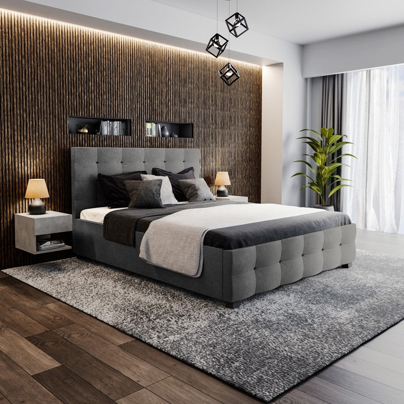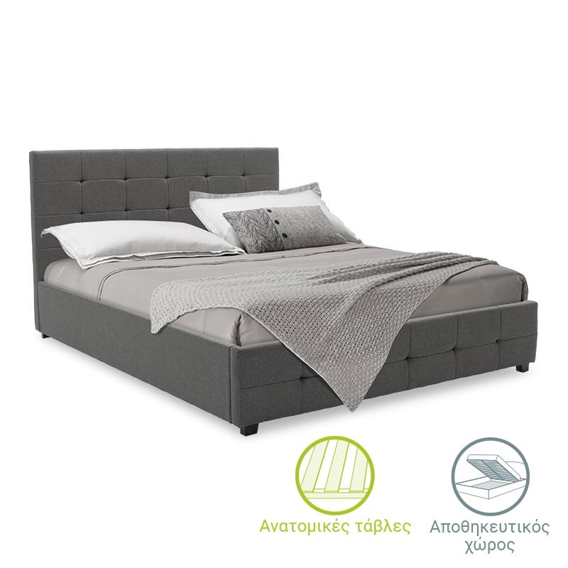 Двойно легло Roi с място за съхранение в тъмносив плат 160x200см