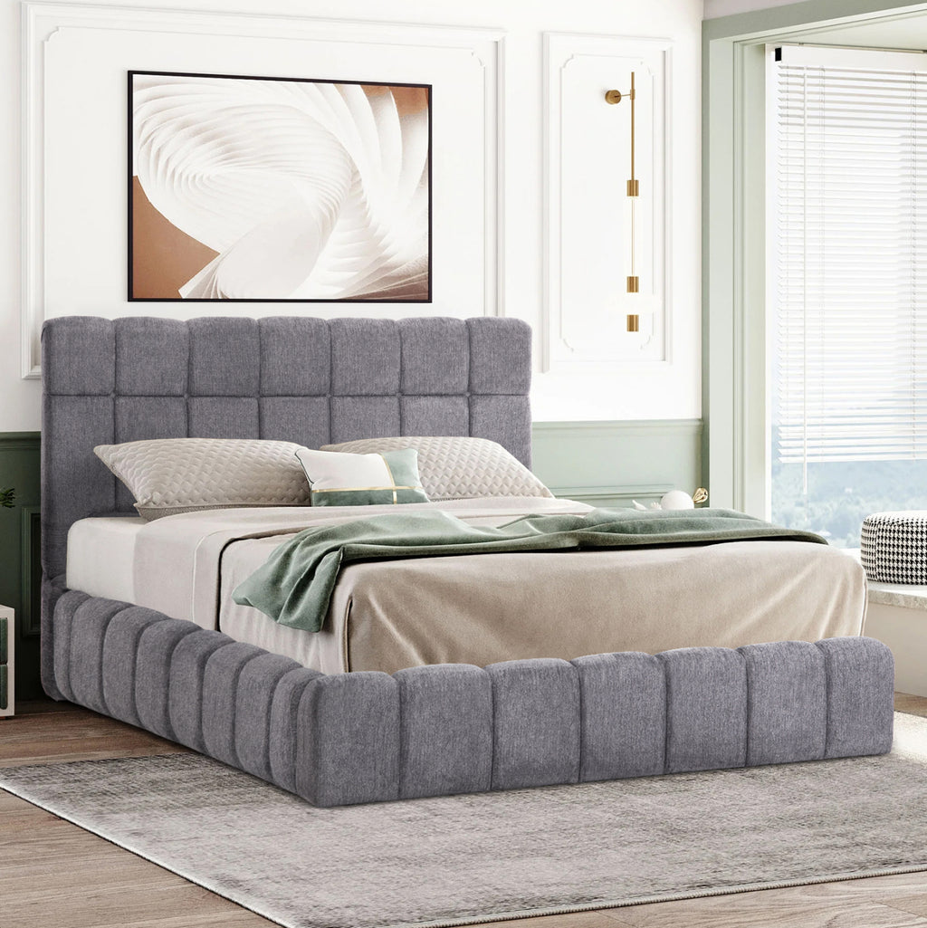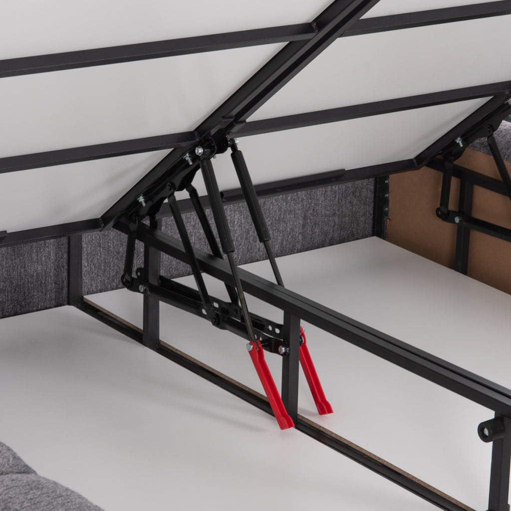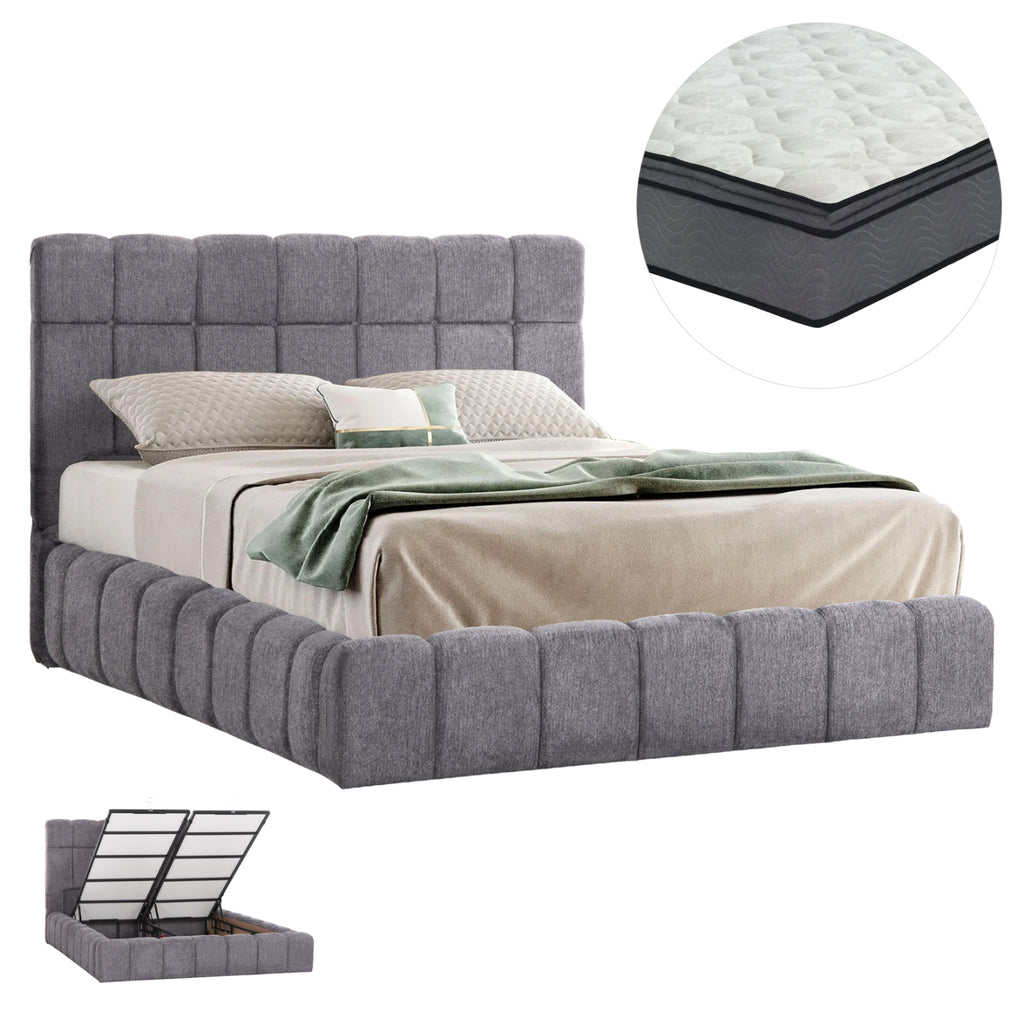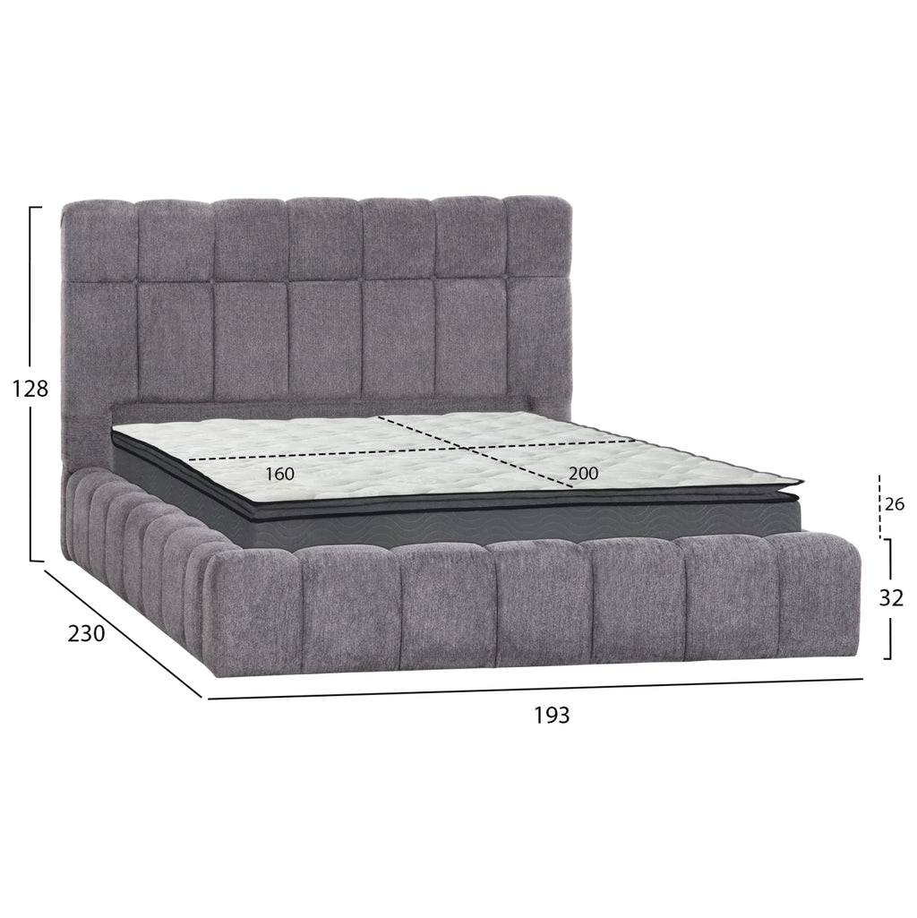 RAMON е легло с кралски размер, което ще ви хареса от пръв поглед! Таблата е висока с капитониран стил, изработена от “топъл” и впечатляващ букле плат в СИВО. Страниците на леглото и таблата за краката имат същата естетика като таблата и “обгръщат” матрака! Матракът е поставен върху две подложки/ПДЧ плоскости, които дори се повдигат с метален предпазен механизъм с 4 амортисьора и прозрачни пластмасови дръжки, предлагайки голямо пространство за съхранение.