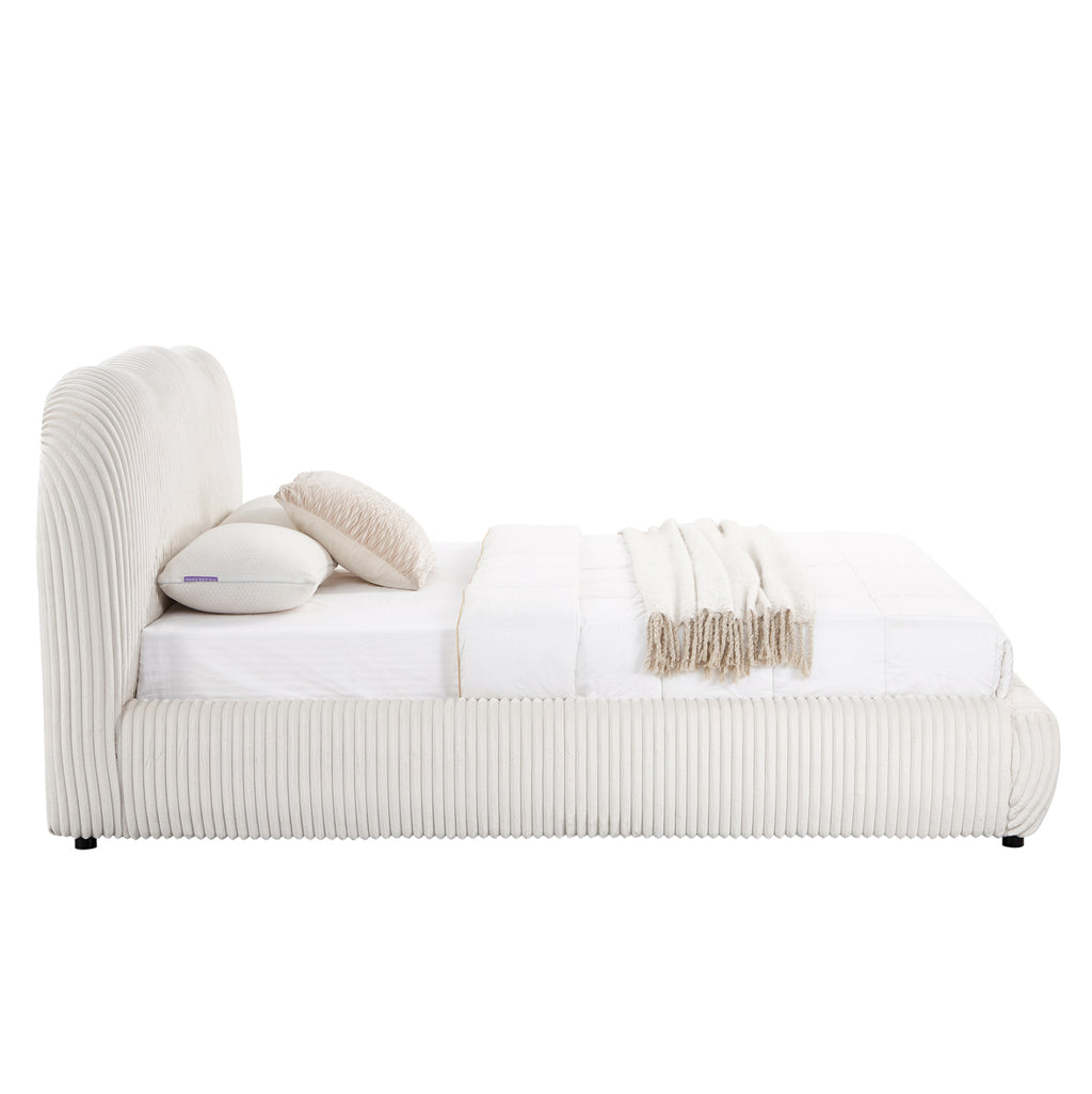 Двойното легло KALLY за матрак 160×200см е ново допълнение към нашата гама. То се откроява с красивата си тапицерия от синтетичен косъм (изкуствена кожа) с вертикални райета в красив БЕЖОВ цвят.