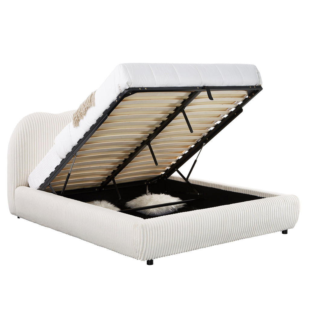 Матракът “седи” върху два реда анатомични летви. В допълнение, металната рамка с опорните летви за матрак е повдигната с метален предпазен механизъм с амортисьор, който държи рамката повдигната толкова дълго, колкото е необходимо, предлагайки голямо пространство за съхранение, което разбира се заема цялото пространство до пода. Краката са ниски, изработени от подсилен полиетилен.