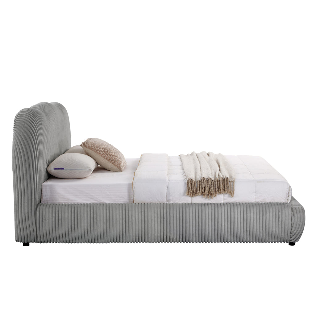 Двойното легло KALLY за матрак 160×200см е ново допълнение към нашата гама. То се откроява с красивата си тапицерия от синтетичен косъм (искусена кожа) с вертикални райета в неутрален СИВ цвят.