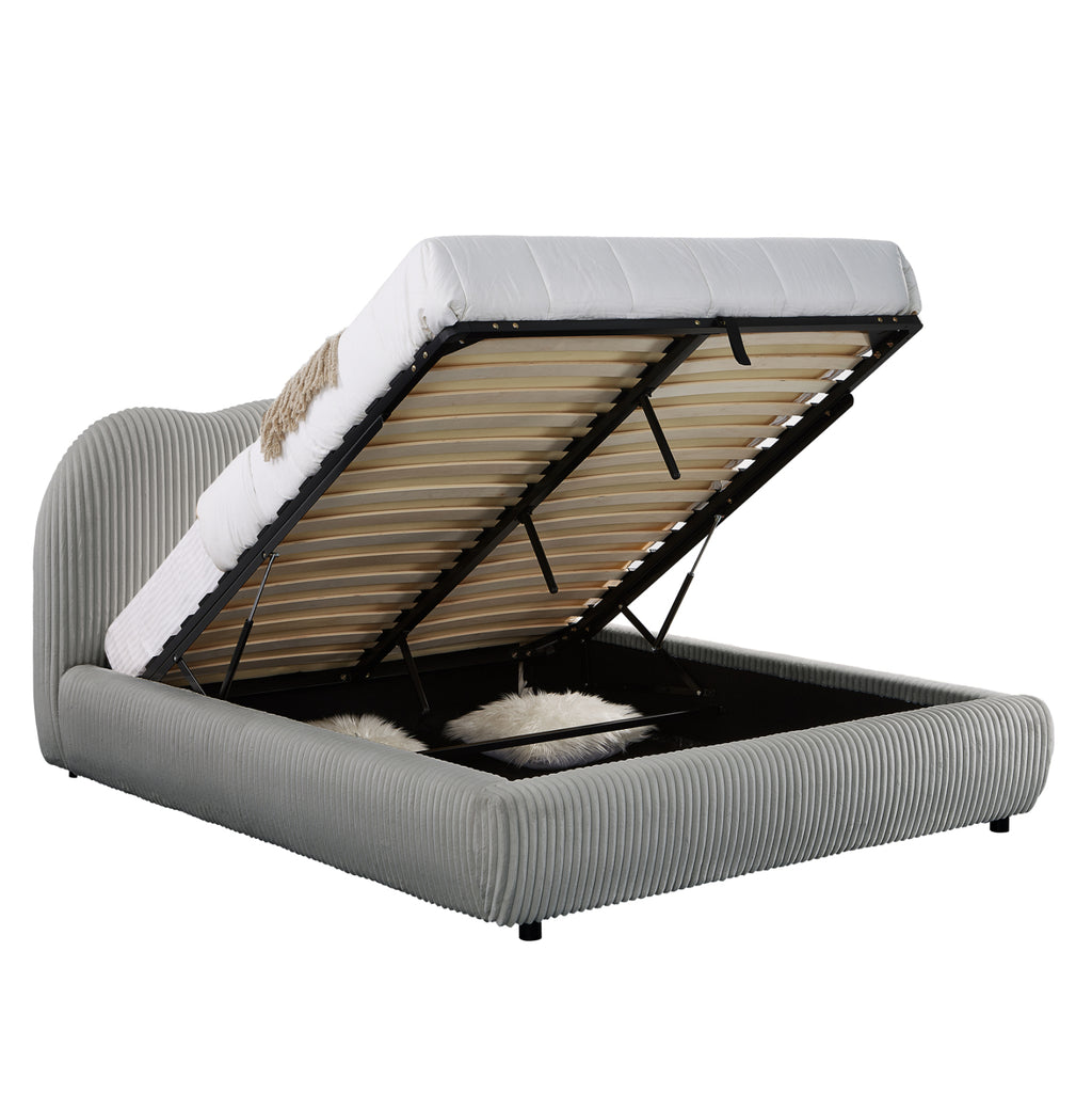 Матракът “седи” върху два реда анатомични летви. В допълнение, металната рамка с опорните летви на матрака е повдигната с метален предпазен механизъм с амортисьор, който държи рамката повдигната толкова дълго, колкото е необходимо, предлагайки голямо пространство за съхранение, което разбира се заема цялото пространство до пода. Краката са ниски, изработени от подсилен полиетилен.