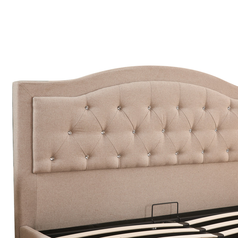 Тапицерията от висококачествен плат в бежов нюанс придава на леглото топъл и уютен вид. Материалът е приятен на допир, издръжлив и създава усещане за комфорт и елегантност в спалнята.