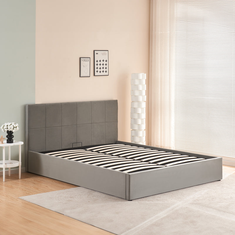 Двойното легло Zamblene е въплъщение на луксоза и функционалност. С мека кадифена тапицерия в сив цвят и вградено място за съхранение, това легло внася изтънченост, комфорт и практичност във всяка спалня.