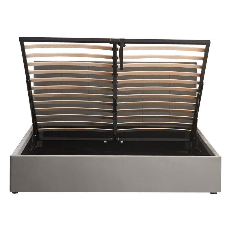 Леглото разполага с просторно място за съхранение под матрака, достъпно чрез газов повдигащ механизъм. Това ви позволява лесно да съхранявате спално бельо, одеяла, възглавници или сезонни дрехи, без да заемате допълнително пространство в стаята.
