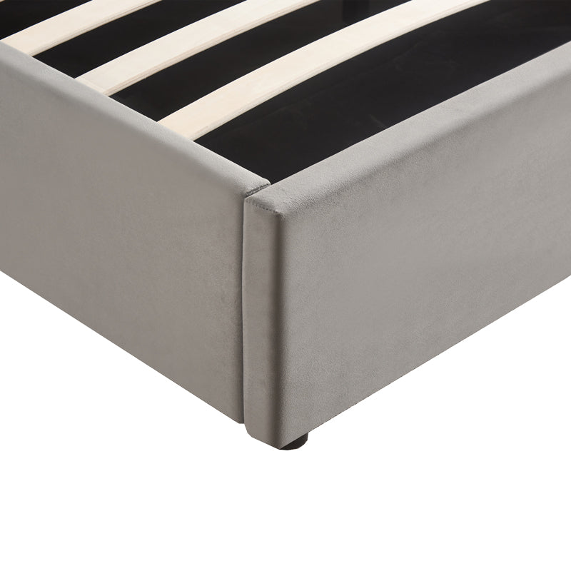 Тапицерията от висококачествено кадифе в сив нюанс придава на леглото луксозен и елегантен вид. Материалът е мек, приятен на допир и създава усещане за изтънченост и комфорт в спалнята.