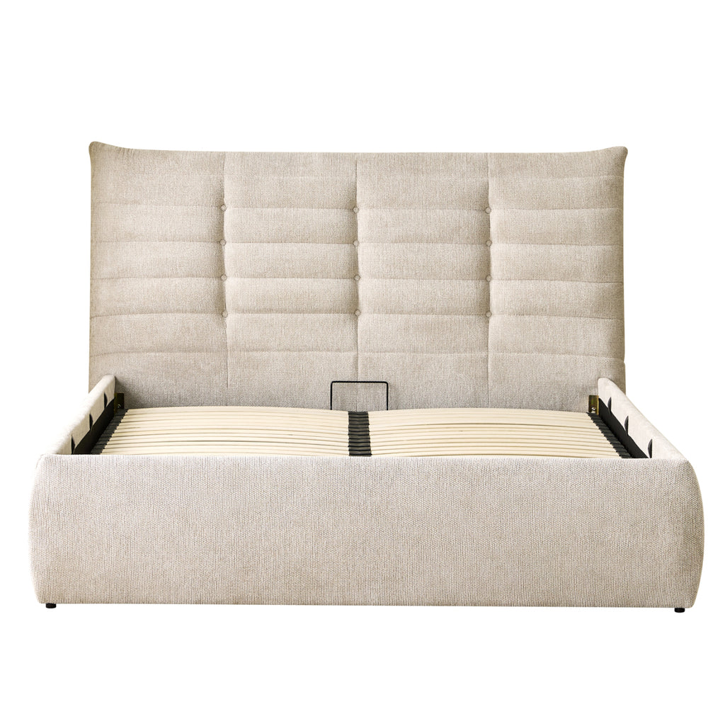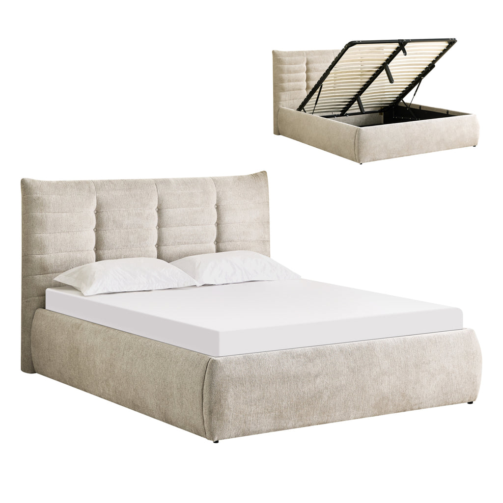 Двойното легло SANDRA (за матрак 160x200) е ново допълнение към нашата гама. Разполага с БЕЖОВА тапицерия от плат, а таблата е с капитониран стил. Матракът се поддържа от 20 реда ергономични опорни дъски, поставени върху метална рамка, повдигната с предпазен механизъм, предлагайки голямо пространство за съхранение, също тапицирано с плат. Модерно предложение, което ще обнови вашата спалня. РАЗМЕРИ: Външни: 178x226x119 см. Височина на таблата: 119 см. Дебелина на таблата: 17 см. Височина на долната част: 40 см. Височина на пластмасовите крачета: 2 см. Размери на матрака: 160x200 см. МАТЕРИАЛИ ЗА КОНСТРУКЦИЯ: -Рамката на леглото е изработена от тополов шперплат, което ѝ придава здравина и издръжливост, като същевременно е „гъвкава“ и екологична форма на дърво. -Механизмът за съхранение е метален и се повдига с окачване (газови амортисьори). Ламелите на матрака също са поставени върху тази метална рамка. -Тапицерията е изработена изцяло от висококачествен плат, което придава атрактивен външен вид и изтънчен чар на декорацията на спалнята. ПОДДРЪЖКА: Материалите, използвани за изработката на леглото, позволяват лесна поддръжка. Едно избърсване с влажна кърпа е достатъчно, за да освежи леглото и да го поддържа да изглежда като ново. ПРЕДИМСТВА: •Здрава конструкция •Естетическо превъзходство с капитонирания стил на таблата •Размер на двойния матрак 160x200см •Място за съхранение с предпазен механизъм •Опорни дъски са включени в комплекта •Лесен монтаж •Идеално легло както за дома, така и за професионални пространства, като хотели и Airbnb. *** Цветопредаването на продукта може леко да се различава от фотографското му представяне на вашия екран.
