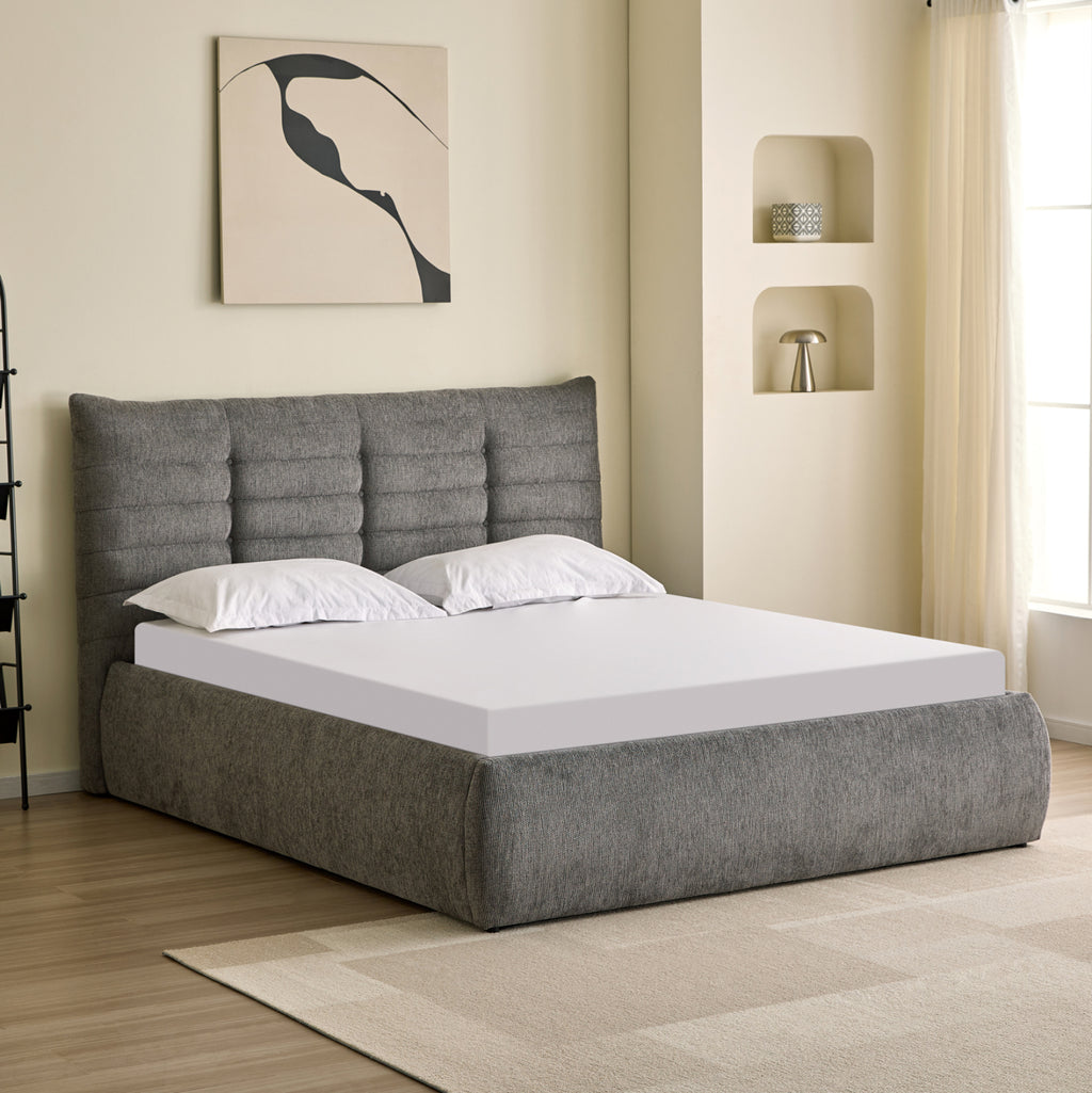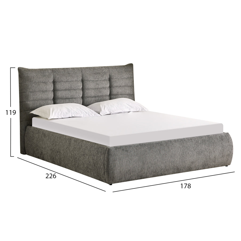 Двойното легло SANDRA (за матрак 160x200) е ново допълнение към нашата гама. Разполага с тапицерия от СИВ плат и капитонирана табла. Матракът се поддържа от 20 реда ергономични опорни дъски, поставени върху метална рамка, повдигната с предпазен механизъм, предлагайки голямо пространство за съхранение, също тапицирано с плат. Модерно предложение, което ще обнови вашата спалня. РАЗМЕРИ: Външни: 178x226x119 см. Височина на таблата: 119 см. Дебелина на таблата: 17 см. Височина на долната част: 40 см. Височина на пластмасовите крачета: 2 см. Размери на матрака: 160x200 см. МАТЕРИАЛИ ЗА ИЗРАБОТКА: -Рамката на леглото е изработена от тополов шперплат, което ѝ придава здравина и издръжливост, като същевременно е „гъвкава“ и екологична форма на дърво. -Механизмът за съхранение е метален и се повдига с окачване (газови амортисьори). Ламелите на матрака също са поставени върху тази метална рамка. -Тапицерията е изработена изцяло от висококачествен плат, което придава атрактивен външен вид и изтънчен чар на декорацията на спалнята. ПОДДРЪЖКА: Материалите, използвани за изработката на леглото, позволяват лесна поддръжка. Едно избърсване с влажна кърпа е достатъчно, за да освежи леглото и да го поддържа да изглежда като ново. ПРЕДИМСТВА: •Здрава конструкция •Естетическо превъзходство с капитонирания стил на таблата •Размер на двойния матрак 160x200см •Място за съхранение с предпазен механизъм •Опорни дъски са включени в комплекта •Лесен монтаж •Идеално легло както за дома, така и за професионални пространства, като хотели и Airbnb. *** Цветопредаването на продукта може леко да се различава от фотографското му представяне на вашия екран.