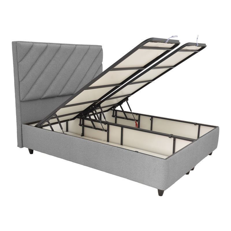 Леглото разполага с просторно място за съхранение под матрака, достъпно чрез газов повдигащ механизъм. Това ви позволява лесно да съхранявате спално бельо, одеяла, възглавници или сезонни дрехи, без да заемате допълнително пространство в стаята.