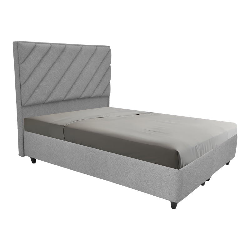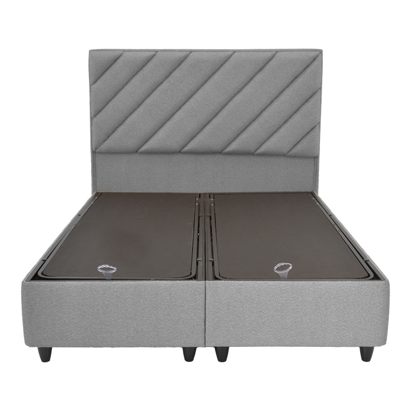 Тапицерията от висококачествен букле плат в светлосив нюанс придава на леглото луксозен и модерен вид. Материалът е мек, приятен на допир и създава усещане за изтънченост и уют в спалнята.