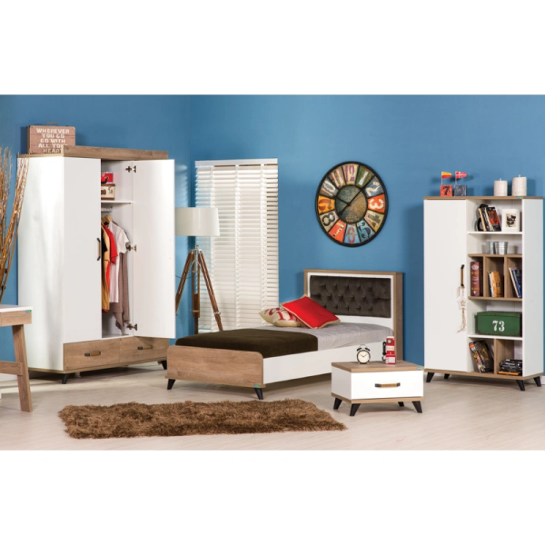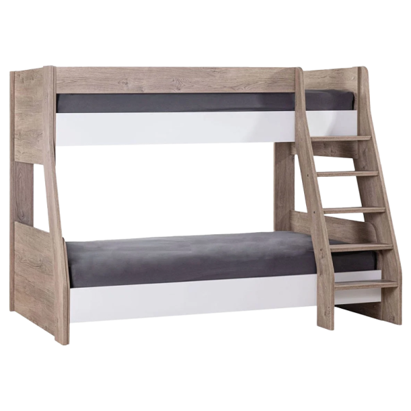 Детско двуетажно легло NATURA е практичен избор за семейства с повече деца или за споделена стая с гости. Изработено от висококачествено ПДЧ, моделът впечатлява със своята стабилна конструкция и естествено излъчване. Удобната стълба осигурява лесен достъп до горното ниво, а предпазните бордове гарантират безопасността по време на сън. Благодарение на своята модулна система, леглото може лесно да се трансформира в две самостоятелни единични легла, в зависимост от нуждите на пространството. Детско двуетажно легло NATURA е функционално решение, което пести място, без да прави компромис с уюта и комфорта.