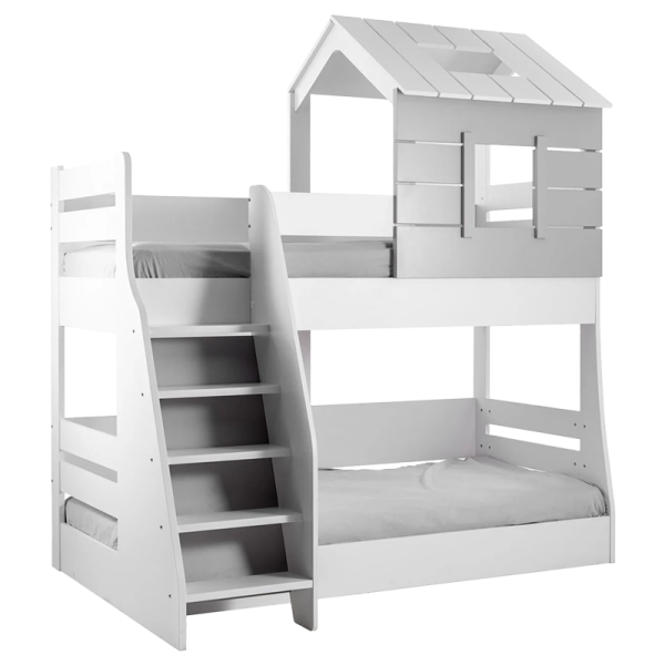 Вдъхновяващ дизайн с модерен скандинавски стил Двуетажното легло WHITE HOUSE превръща детската стая в уютно и стилно пространство. Със своята комбинация от бяло и светло сиво, то съчетава минималистичен дизайн и функционалност, създавайки спокойна и вдъхновяваща атмосфера за игра, учене и почивка. WHITE HOUSE е перфектен избор за родителите, които се стремят да насърчават самостоятелността на своите деца, вдъхновени от философията на метода Монтесори. Леглото предлага различни функционалности – горно ниво за сън и долно ниво, което може да се използва като удобно място за почивка или кът за игра. Тази концепция развива въображението, като същевременно учи децата да бъдат организирани и самостоятелни. |