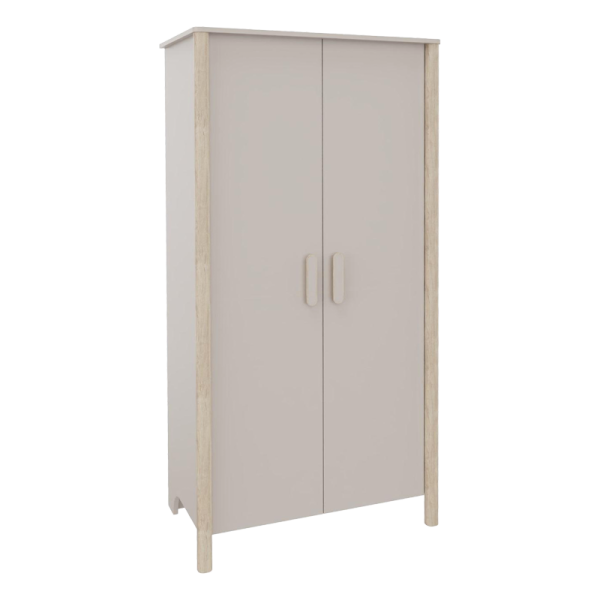 Детският двукрилен гардероб STILT HOUSE предлага практично и стилно решение за съхранение. Изработен от ПДЧ с дебелина 18 мм, той разполага с вътрешно разпределение от два рафта и лост за закачалки, осигуряващи удобна организация на дрехите. Панти с плавно затваряне гарантират безшумна употреба, а вентилационните отвори на гърба допринасят за добрата циркулация на въздуха.