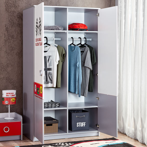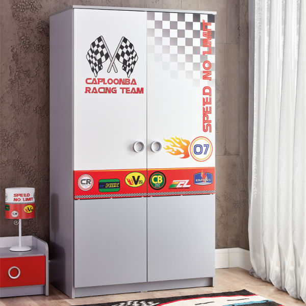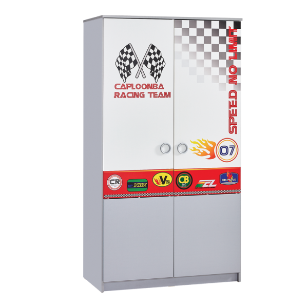 Двукрилният гардероб TURBO CAP 2 е идеално решение за детската стая, съчетавайки стил и функционалност. Ярките червени и сиви тонове и състезателните мотиви правят гардероба забележителен и привлекателен за децата, като стимулират тяхното въображение. Широкото вътрешно пространство предлага място за удобно съхранение на дрехи, играчки и други вещи, което помага за поддържане на реда в стаята. TURBO CAR 2 е перфектен избор за добавяне на енергия и динамика в интериора, като съчетава естетика и практичност.