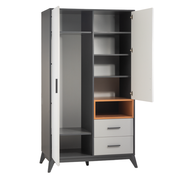 Двукрилният гардероб BREDA предлага елегантен дизайн и практичност, подходящи за всяка спалня или детска стая. Изработен е от 18 мм висококачествено ПДЧ, което гарантира здравина и устойчивост при дългосрочна употреба. Със своето просторно вътрешно разпределение, гардеробът предоставя достатъчно място за съхранение на дрехи, аксесоари и други вещи. Изчистените линии и стилният външен вид го правят идеално допълнение към съвременния интериор.