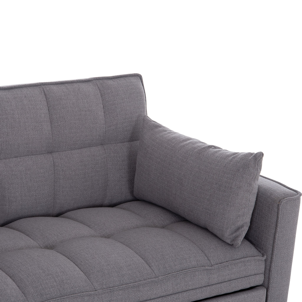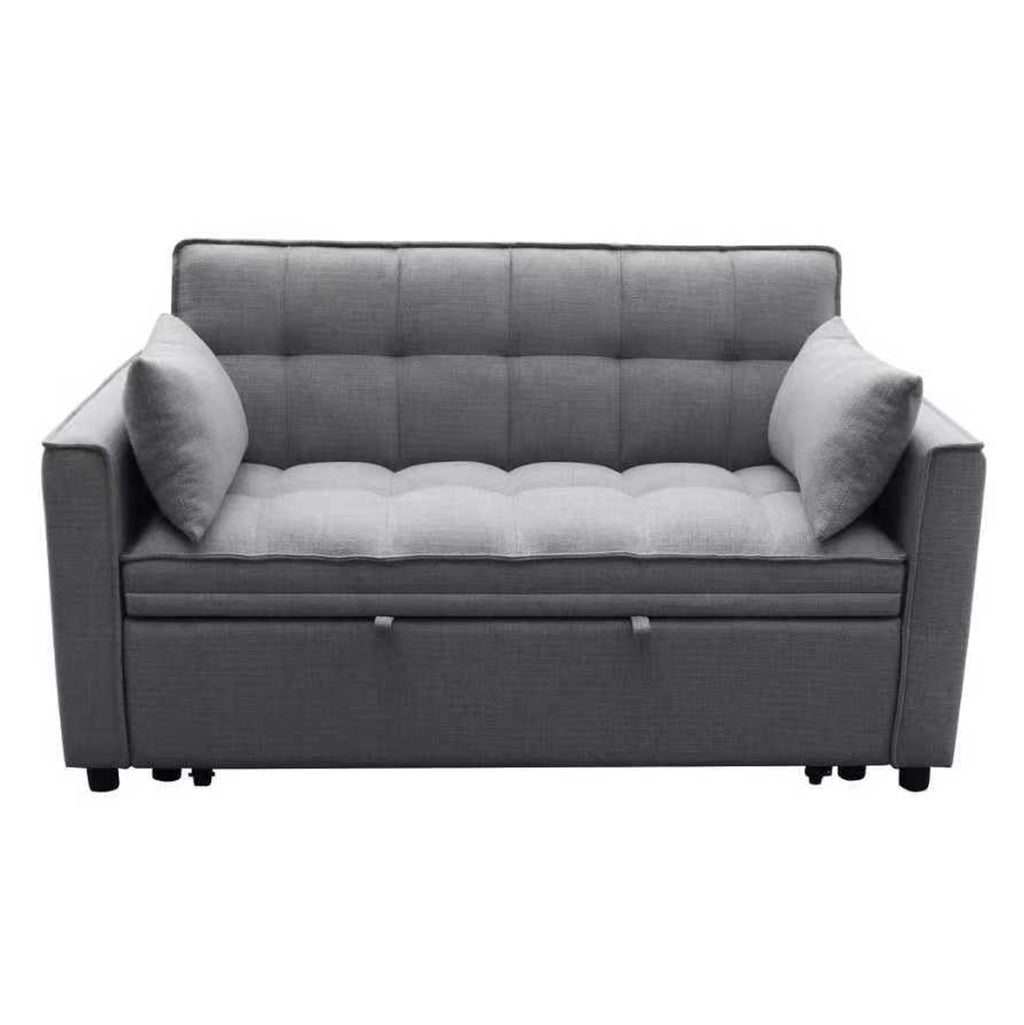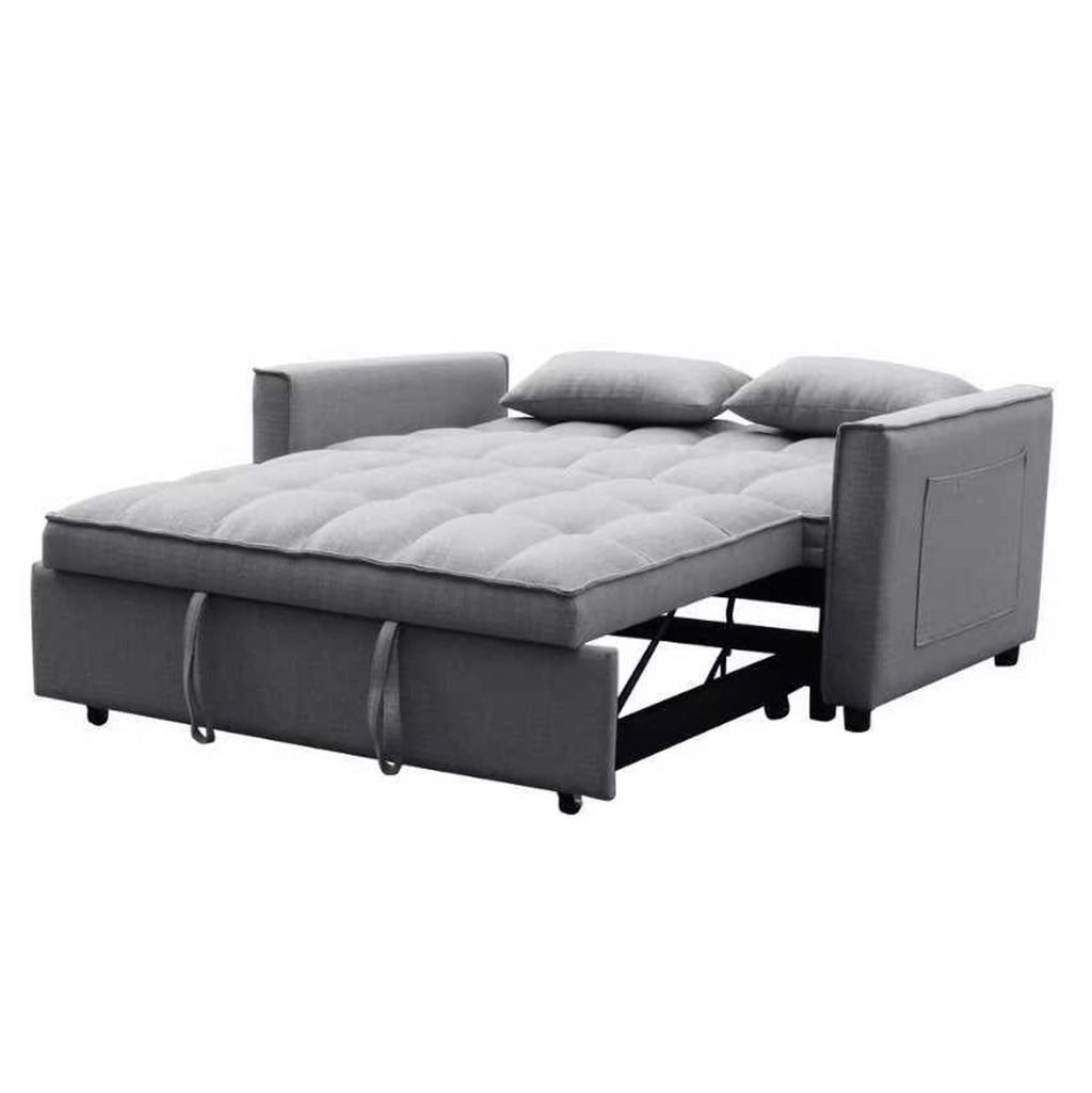 Модерен и функционален двуместен диван с механизъм за разтягане, който лесно се превръща в удобно легло. Тапициран с висококачествен сив плат, този диван е идеалното решение за малки пространства, гостни стаи или студиа.