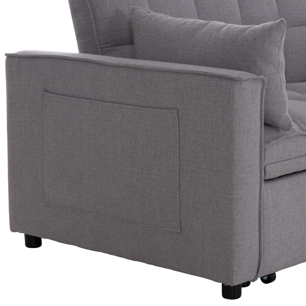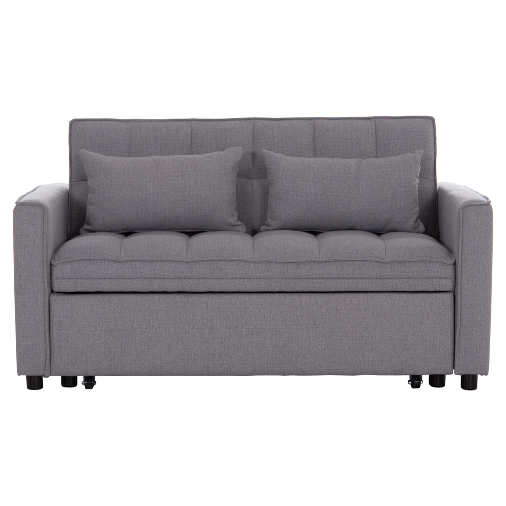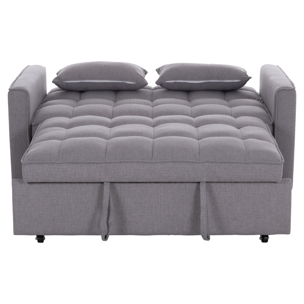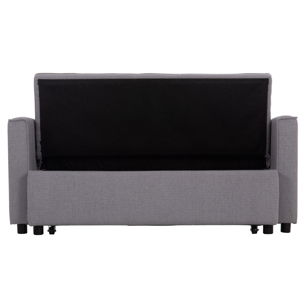 Модерен и функционален двуместен диван с механизъм за разтягане, който лесно се превръща в удобно легло. Тапициран с висококачествен сив плат, този диван е идеалното решение за малки пространства, гостни стаи или студиа.