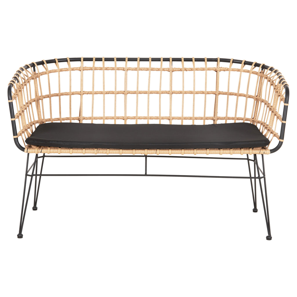 Двуместната външна пейка ALLEGRA от едноименната серия е изработена от плетена ракита от син. Ратан в БЕЖОВ и ЧЕРЕН цвят и ЧЕРНА метална рамка. Има облегалка и черна седална възглавница, като характерното за него е, че металната му рамка "обикаля" цялата пейка. РАЗМЕРИ: 125x60x77H см. Размери на седалката: 112x51 см. Размери на гърба: 110х36см. Височина на ръцете: 73 см. Височина на седалката: 46 см. Височина на крака: 40 см. Разстояние между краката: 116х49 см. Дебелина на възглавницата: 3см. от полиестерен материал КОНСТРУКТИВНИ МАТЕРИАЛИ: Рамката е изработена от масивен метал, боядисан с електростатична боя. Информация: Електростатичното боядисване е процес на сухо покритие, използван като метално покритие. Електростатичното боядисване е нанасяне на сух прах чрез електростатичен процес, който след това се „свързва“ към метала чрез топлина. Подплатата е синтетичен ратан в ракита. Повечето градински мебели и външни мебели като цяло използват PVC синтетичен ратан, т.е. висококачествени изкуствени влакна. Това придава на конструкцията изключителна здравина и издръжливост при екстремни горещини или студени условия. ПОДДРЪЖКА: Поддръжката е лесна. Освен редовното почистване от прах, можете да го избършете с влажна кърпа. НЕ използваме препарати, белина и лакове. Ако все пак се налага използването на перилен препарат, тогава използваме мек сапун с топла вода. НЕ използваме машина под налягане или маркуч с налягане, защото това ще повреди влакната. *Продуктът се доставя във фабрична опаковка в несглобен вид. **Точното цветопредаване на продукта може леко да се различава от действителния продукт поради различни настройки на монитора.