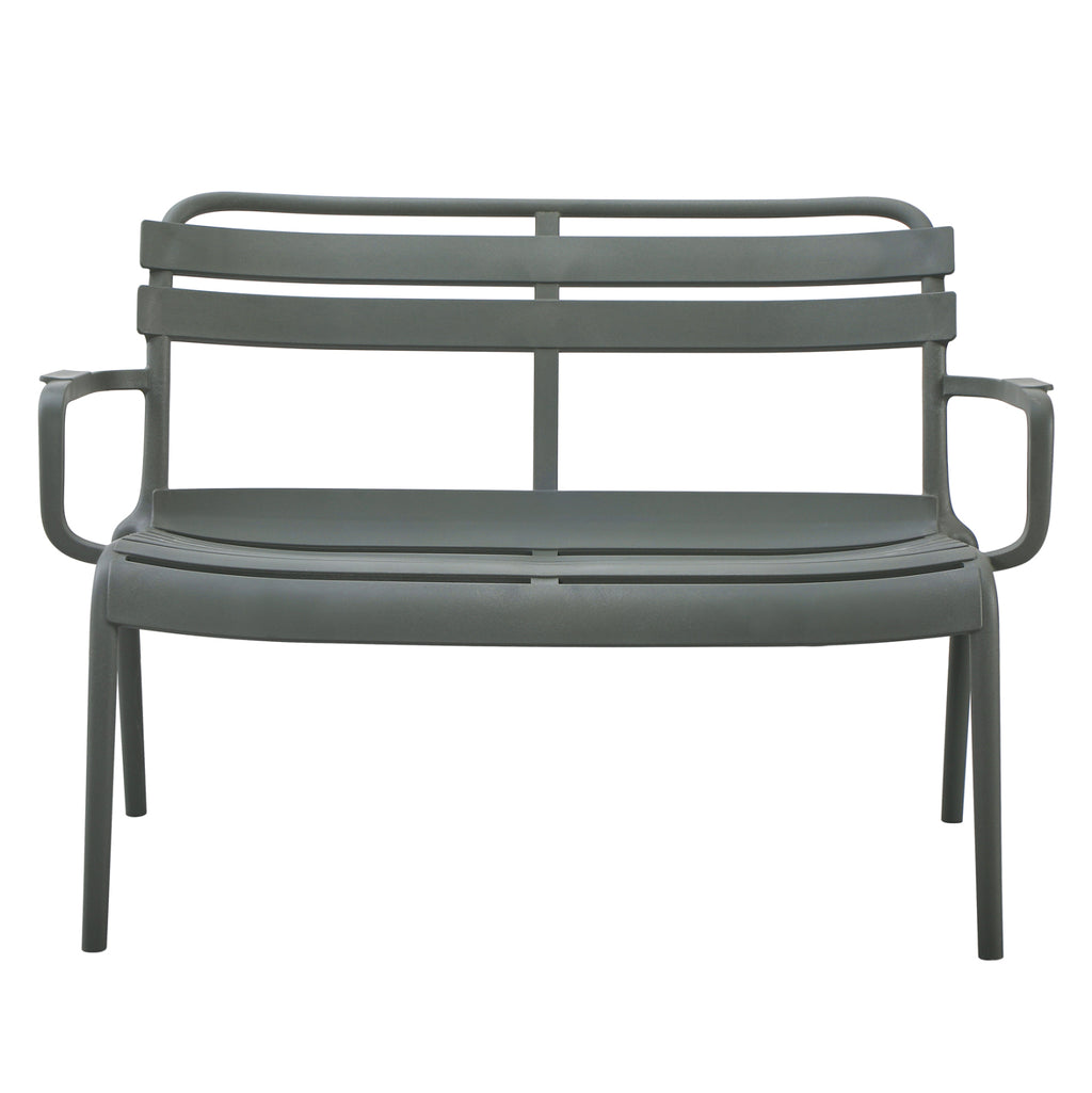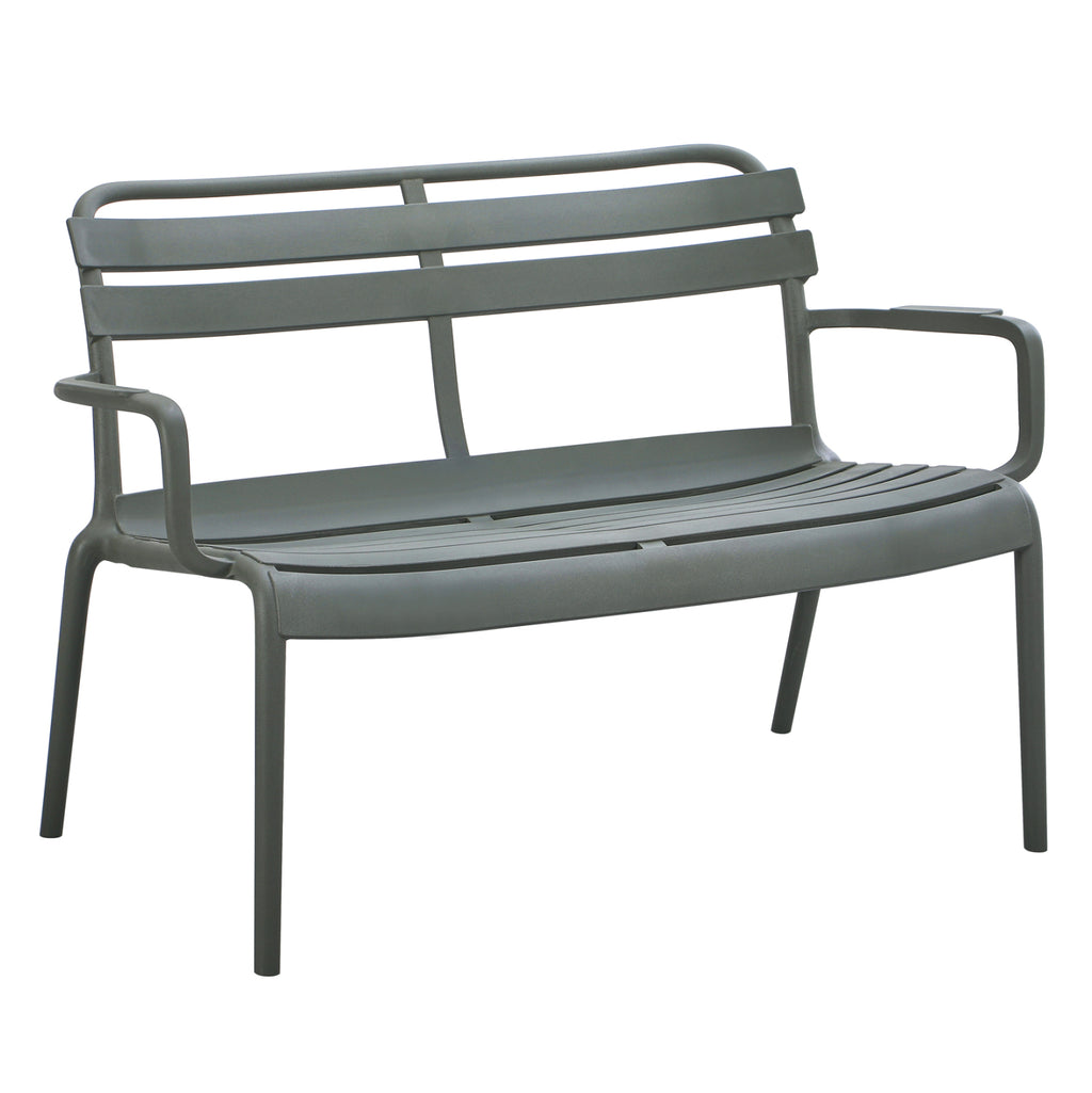 2-местната външна пейка KORVER е изцяло изработена от полипропилен в цвят ТЪМНО МАСЛИНЕНО ЗЕЛЕН. Дизайнът е прост, с красиви извивки, с гръб и ръце и може да се използва по много начини, предлагайки практична и издръжлива употреба. Идеално предложение за използване във външни пространства, независимо дали професионални (банкетни зали, кетъринг компании и др.) или за дома. РАЗМЕРИ: 113x65x76H см. Размери на седалката: 79х46 см. Размери на гърба: 97х20см. Височина на ръцете: 60см. Височина на седалката: 43 см. Разстояние между краката: 97х57 см. МАТЕРИАЛИ НА КОНСТРУКЦИЯТА: Пейката е изработена от 100% висококачествен полипропилен. Полипропиленът е особено устойчив на тегло и вода, като същевременно има голяма устойчивост на температури до 125 градуса по Целзий. Освен това неговата издръжливост не се ограничава до тегло, вода и температура, но е необичайно устойчив на много химически разтворители и киселини. ПОДДРЪЖКА: Мебелите от полипропилен се почистват лесно с влажна кърпа. Ако са на открито, могат да се почистват директно с течаща вода. С ПОГЛЕД: •Леко тегло •Лесна поддръжка •МОЖЕ ДА СЕ СТЕПИРА ** Цветопредаването на продукта може леко да се различава от фотографското представяне на вашия екран.
