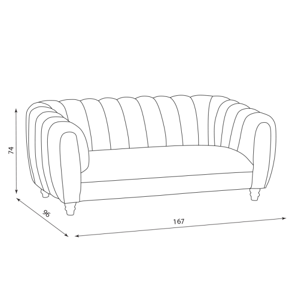Двуместното канапе KORI е модел със стилен, елегантен дизайн, който притежава едновременно леко ретро излъчване и модерна визия. Изработено е от висококачествени материали – стабилна конструкция от дърво и метал, пълнеж със силиконова вата и покет пружини за максимално удобство и нежна, здрава дамаска.