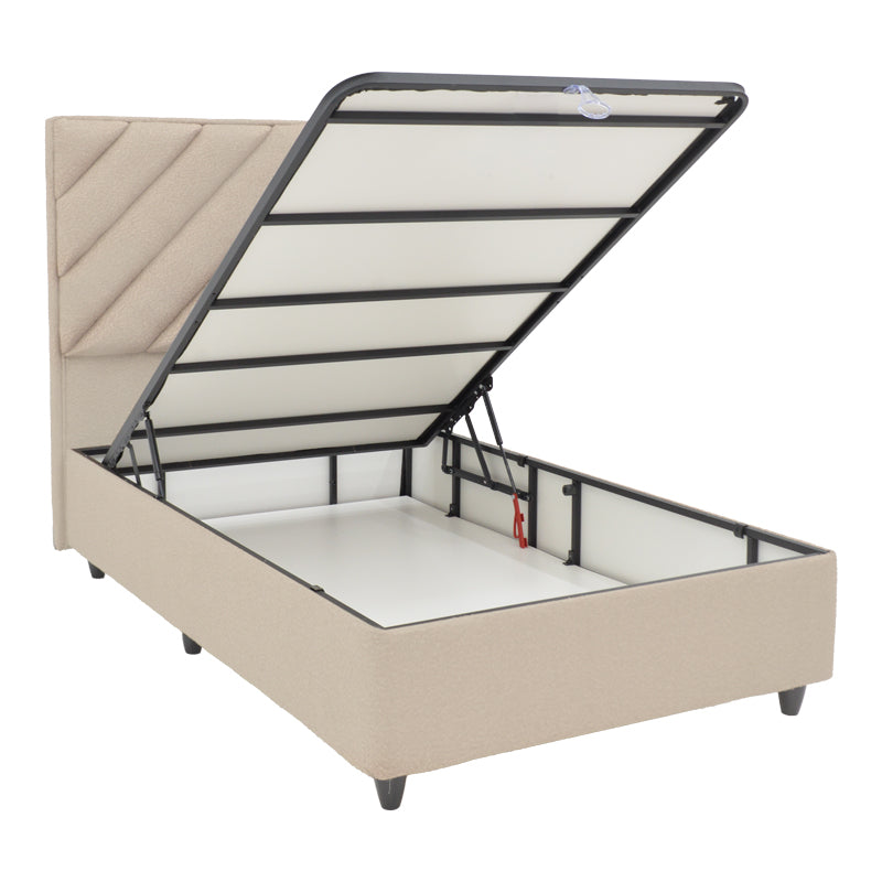 Леглото разполага с просторно място за съхранение под матрака, достъпно чрез газов повдигащ механизъм. Това ви позволява лесно да съхранявате спално бельо, одеяла, възглавници или сезонни дрехи, без да заемате допълнително пространство в стаята.