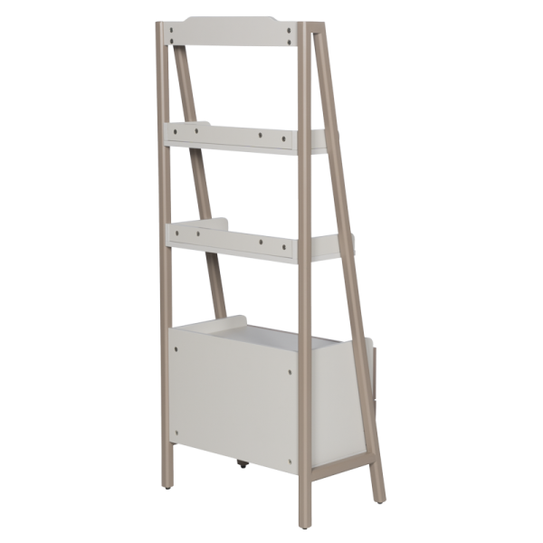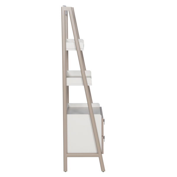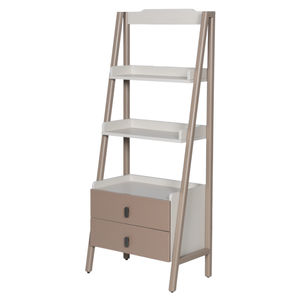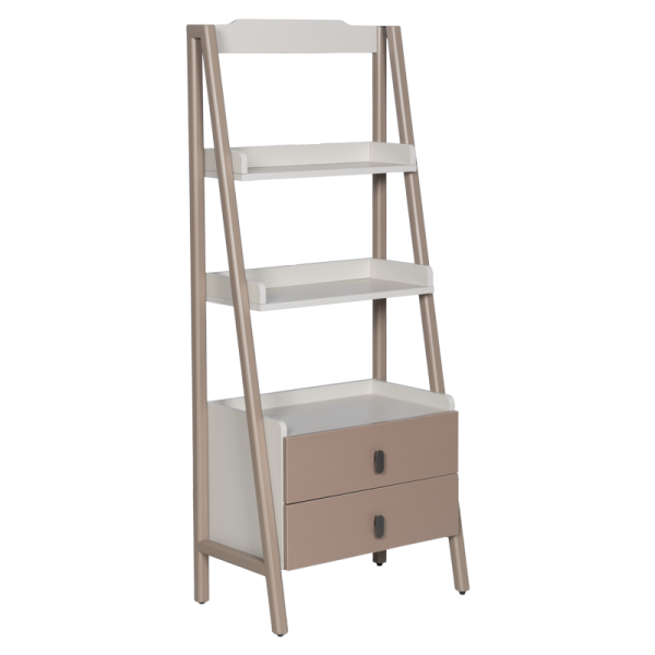 Етажерка ALEGRIA комбинира стилен дизайн и практичност в едно функционално решение за вашия дом. Разполага с три удобни рафта за декорация или книги и две чекмеджета за скрито съхранение. Конструкцията е изработена от ПДЧ с меламиново покритие и метални елементи за допълнителна стабилност. Цветът капучино придава усещане за топлина и уют.