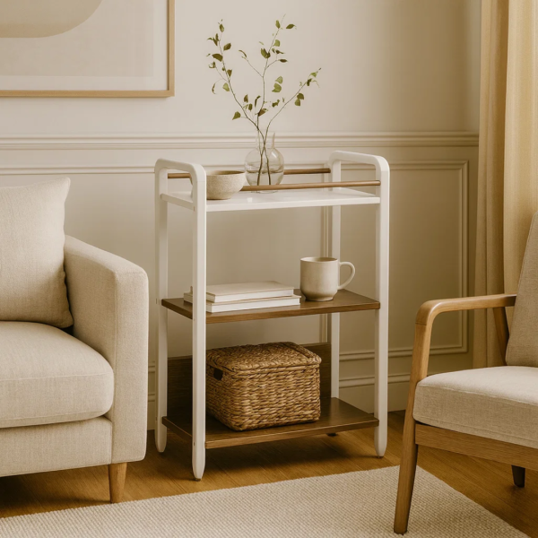 Етажерка CARCAR – капучино е стилно и практично решение за съхранение, което съчетава модерен дизайн и функционалност. Изработена е от ПДЧ с меламиново покритие и метална конструкция, гарантираща стабилност и дълготрайност. Разполага с три просторни рафта, подходящи за книги, декоративни елементи или офис принадлежности. Компактната ѝ форма я прави подходяща за всеки дом или работно пространство, а цветът „капучино“ придава топлина и елегантност на интериора.