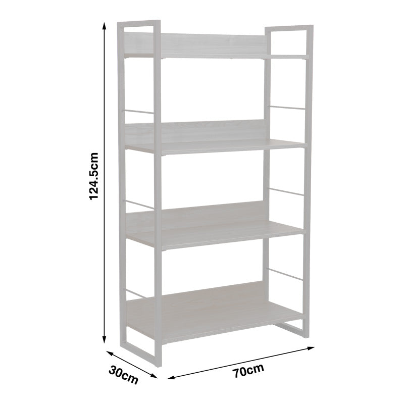 Етажерката за книги Dorfie разполага с четири просторни рафта, които осигуряват достатъчно място за подреждане на книги, декоративни предмети, саксийни растения или офис аксесоари.