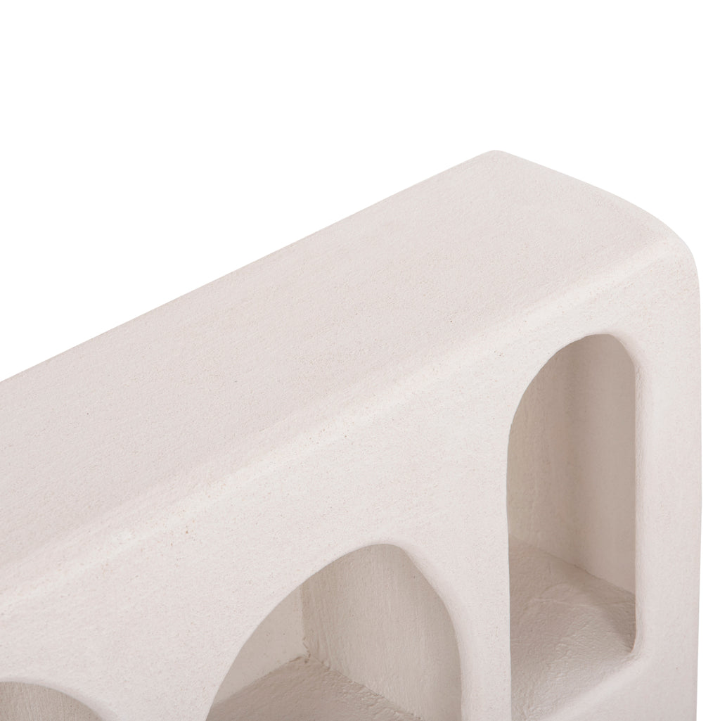 Ръчно изработената стенна етажерка SANTORINI е изцяло изработена от МДФ с циментова пясъчна текстура, следваща най-новата тенденция в интериорния дизайн, в цвят OFF-WHITE. Разполага с 5 отворени пространства с различни размери за съхранение или поставяне на предмети. Тази етажерка е елегантна и красива и ще даде допълнителна възможност за завършване на вашата декорация в стил "остров". РАЗМЕРИ: 120x18x60Y cm МАТЕРИАЛ ЗА ИЗРАБОТКА: Продуктът е изработен от MDF. MDF (влакна със средна плътност) е модерен материал за масово потребление с основните характеристики на абсорбиране на минимална влага, хомогенност на масата, задоволителни механични свойства, отлична гладкост и много възможности за обработка. ПОДДРЪЖКА: Достатъчно е редовно почистване на прах и забърсване с влажна кърпа, като можете да използвате и меки търговски почистващи препарати. ** Цветопредаването на продукта може леко да се различава от неговото фотографско представяне на вашия екран.