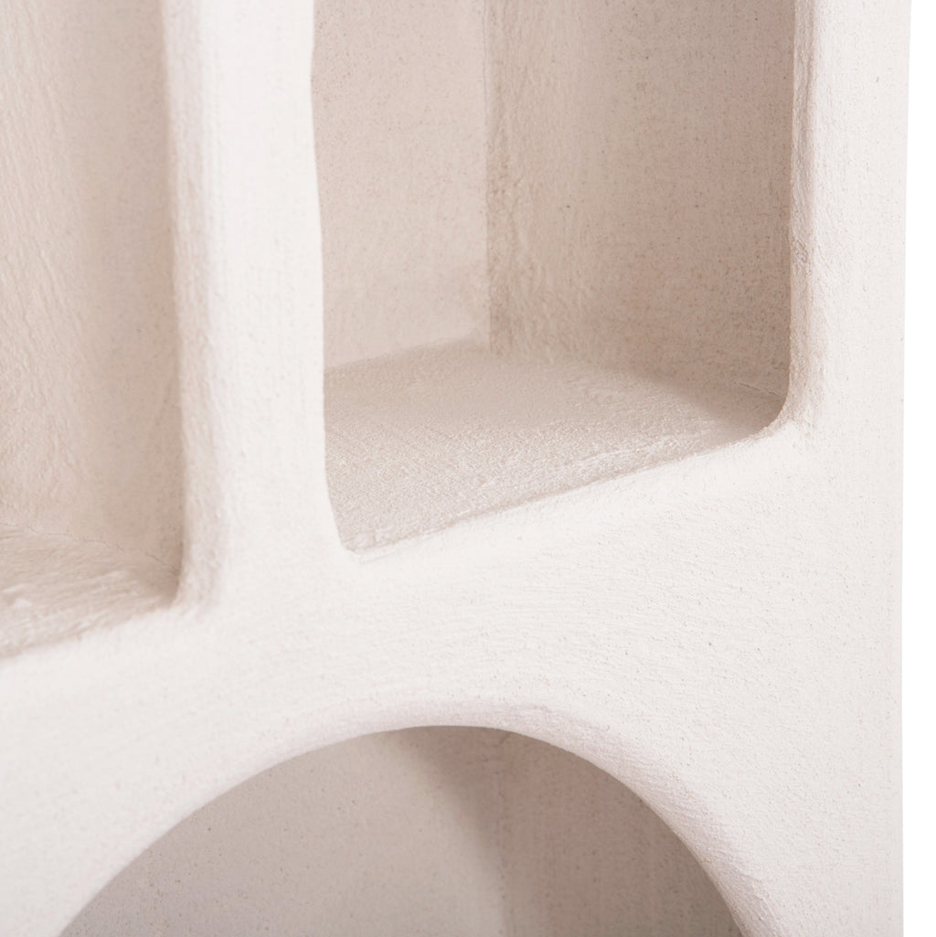 Ръчно изработената стенна етажерка MH18069 от серия мебели "SANTORINI" е изцяло изработена от MDF с циментова текстура, следваща най-новата тенденция в интериорния дизайн, в цвят OFF-WHITE. Разполага с 4 отворени пространства (рафта) с различни размери и форми за съхранение или поставяне на предмети. Тази етажерка е елегантна и красива и ще даде допълнителна възможност за завършване на вашата декорация, особено ако я комбинирате с други мебели с подобна естетика. Идеален да допълни по най-добрия начин декорация в стил "остров"! РАЗМЕРИ: 47.5x18x120Y cm МАТЕРИАЛ ЗА ИЗРАБОТКА: Продуктът е изработен от MDF. MDF (влакна със средна плътност) е модерен материал за масово потребление с основните характеристики на абсорбиране на минимална влага, хомогенност на масата, задоволителни механични свойства, отлична гладкост и много възможности за обработка. ПОДДРЪЖКА: Достатъчно е редовно почистване на прах и забърсване с влажна кърпа, като можете да използвате и меки търговски почистващи препарати. ** Цветопредаването на продукта може леко да се различава от неговото фотографско представяне на вашия екран.