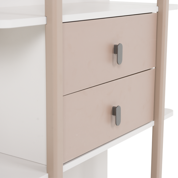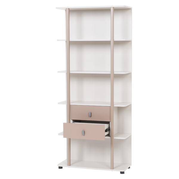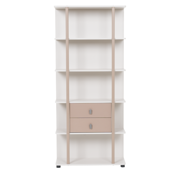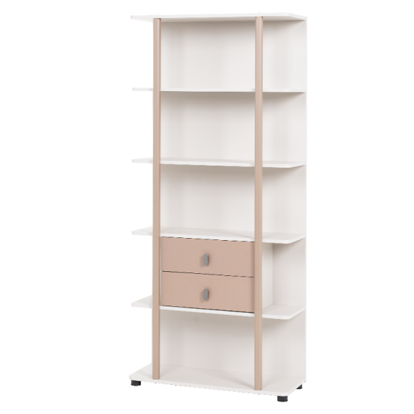 Етажерка CEBU впечатлява с модерен дизайн и функционално разпределение. Моделът предлага четири рафта за съхранение и излагане на книги, аксесоари или декоративни предмети, както и две практични чекмеджета в централната част. Етажерката е подходяща както за детска стая, така и за всекидневна или кабинет, добавяйки хармония и елегантност във всяко пространство.