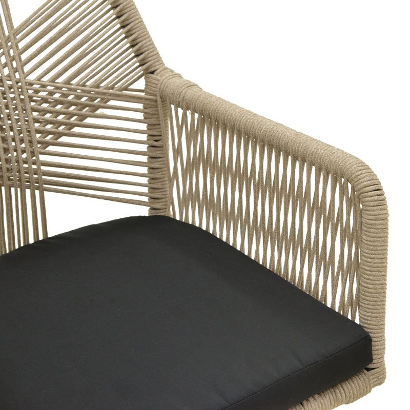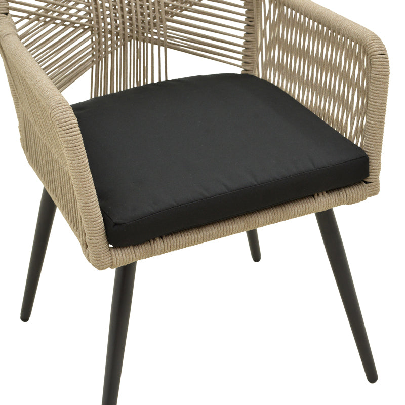 - Дълготраен комфорт: Черните възглавници предлагат изключителен комфорт, а тъканта от PE въже (Ø5 мм) повишава преживяването.