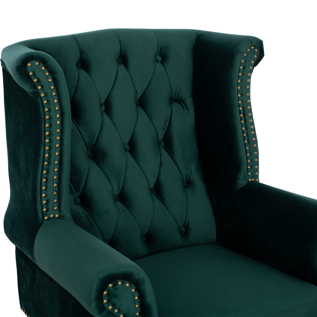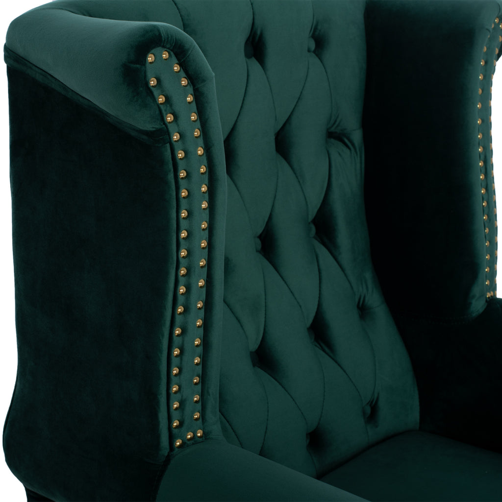 Дизайнът е подчертан от дълбоко капитонирана тапицерия, която внася усещане за престиж и класа. Използван е висококачествен кадифен плат, който е не само визуално ефектен, но и изключително приятен на допир. Цветът кипър придава дълбочина и аристократично присъствие. Той се комбинира лесно с различни интериорни стилове.