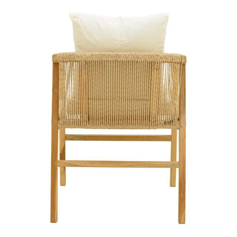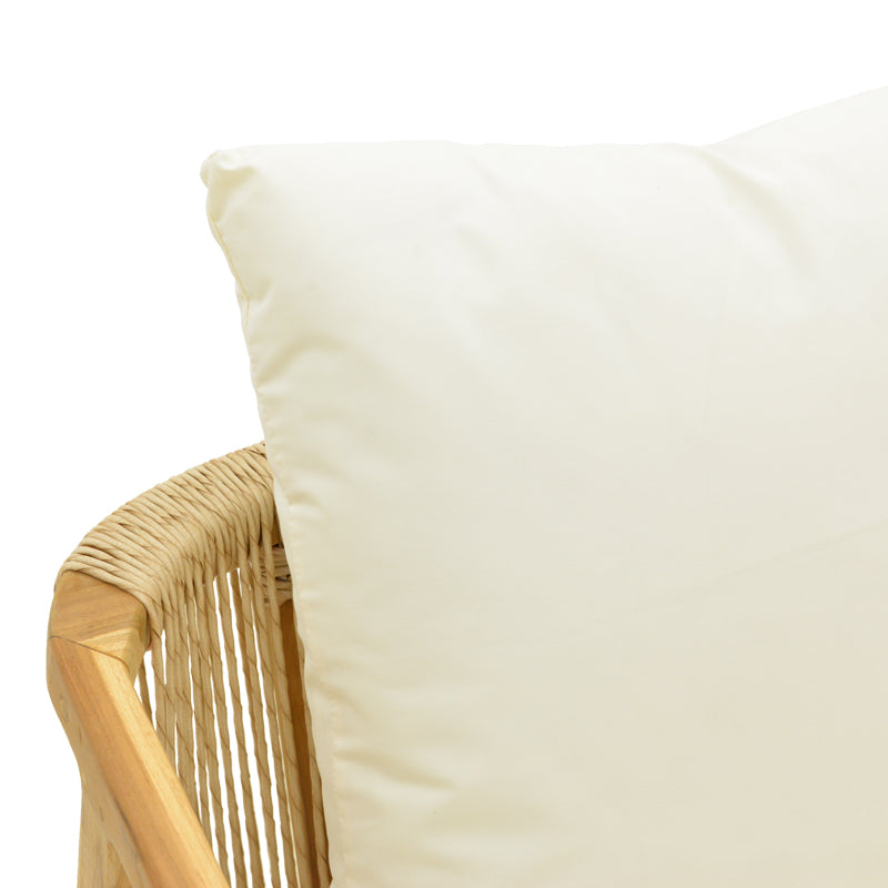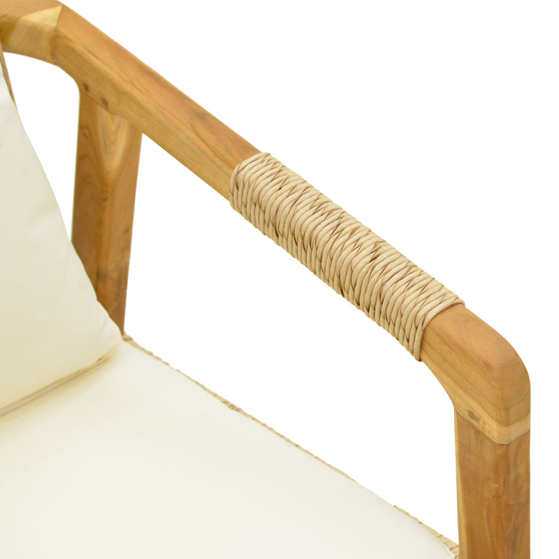 • Фотьойлът се предлага с меки, удобни възглавници в неутрален нюанс, които хармонично допълват дървените и въжени текстури