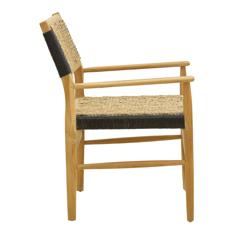 • Изработена от подсилена рамка от висококачествено тиково дърво за издръжливост и стабилност. Продуктът, изработен от този специфичен вид дървесина, може да има пукнатини или да се появят в бъдеще. Това не се счита за дефект, тъй като е резултат от естественото свиване и разширяване на масивната естествена дървесина. Освен това може да има цветови вариации в различните области на продукта, тъй като пукнатините са запълнени и смесени с парчета от същата дървесина.
