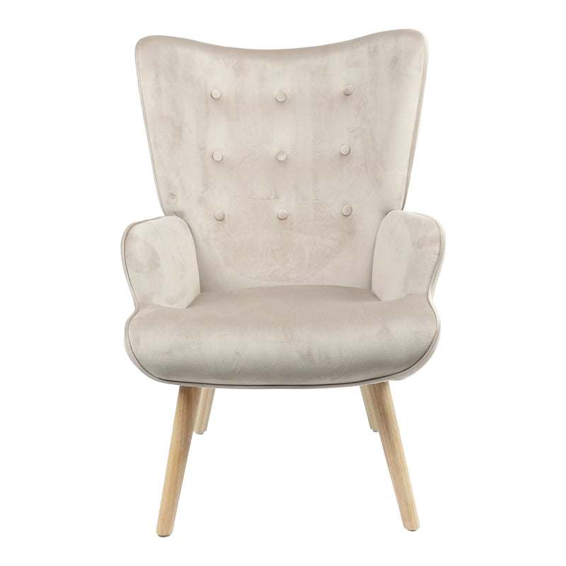Фотьойл Fluffy кадифе бежов-естествен крак 75x69x96см