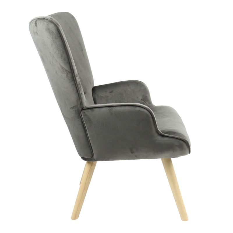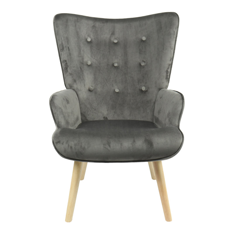 Фотьойл Fluffy кадифе антрацит-естествен крак 75x69x96см