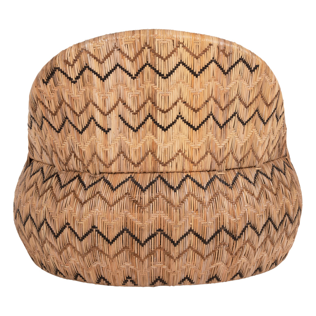 Кръглият фотьойл LADLON е предназначен предимно за външни пространства и прилича на пуф с облегалка. Това е красиво кресло. Изработен е от естествен ратан в НАТУРАЛЕН цвят, като има детайли в черно, кафяво и бежово. Възглавницата на седалката е удобна, а калъфката й е изработена от релефен памучен плат Ekrou. РАЗМЕРИ: 97x97x76H см. Височина на седалката: 41 см. Размери на седалката: Φ79 см. Размери на гърба: 69х40см. Дебелина на възглавницата: 5см. МАТЕРИАЛИ НА ИЗРАБОТКА: Цялото кресло е изработено от ратан. Ратанът е най-добрият и най-широко използван естествен материал за тъкани конструкции, като ракита и т.н. Всъщност ратанът, отглеждан в Индонезия, е най-висококачественият и най-издръжлив материал от подобни, отглеждани в други региони. ПОДДРЪЖКА: Необходимо е само почистване от прах и при необходимост почистване с влажна кърпа. ПРЕДИМСТВА: • Комфорт при използване • Цип на калъфката на възглавницата • Съотношение цена-качество • Доставя се готов за употреба