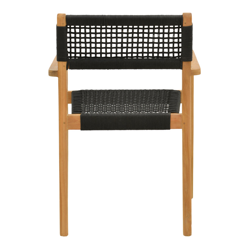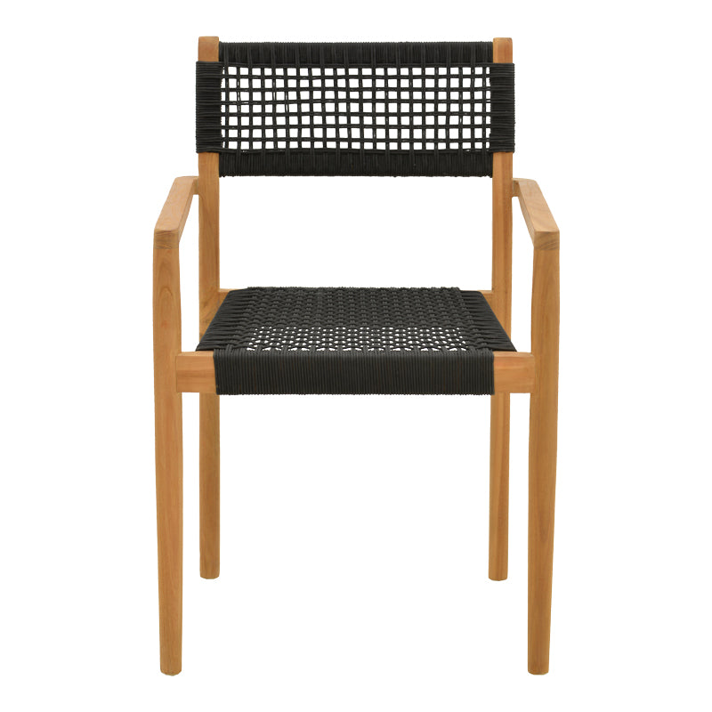 - Седалка и облегалка: Ръчно изтъкани с издръжливо черно PE въже , създаващи атрактивен, дишащ модел. Този детайл добавя уникална текстура и рустикален, естествен елемент, като същевременно предлага отличен комфорт, адаптирайки се към формата на тялото.