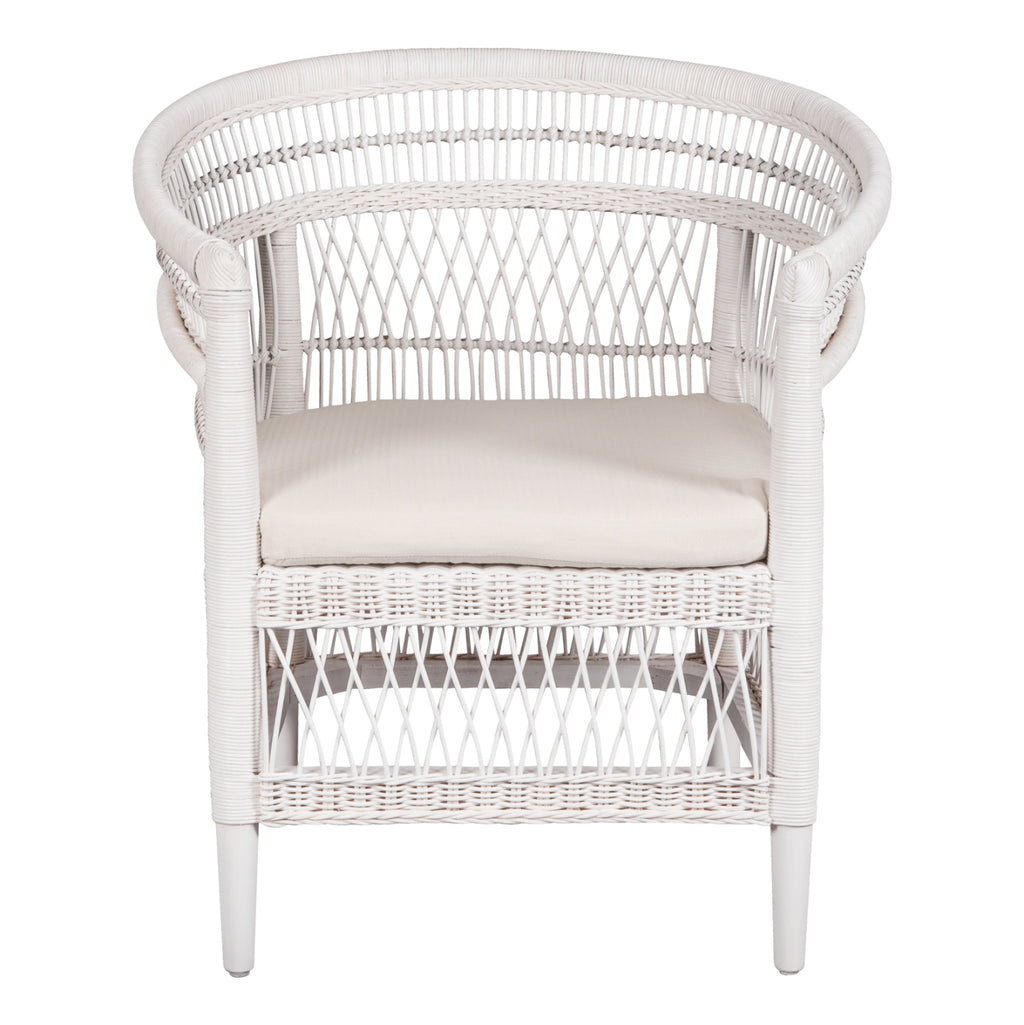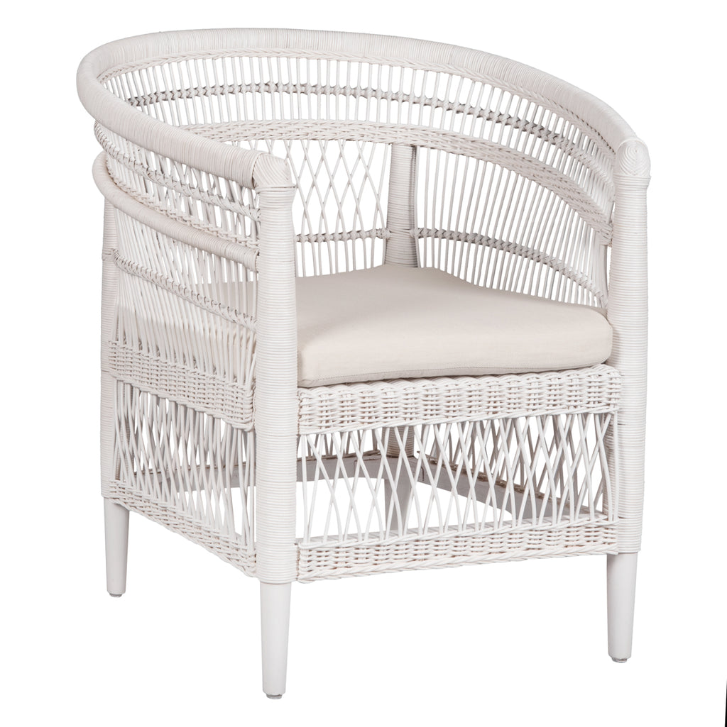 Кресло MALAWI е прекрасно! Модерни, удобни и стабилни с доминиращ цвят БЯЛО. Полукръглата седалка на фотьойла е удобна и има възглавница със средна твърдост, а фотьойлът създава усещане за прегръщане на тялото. Но това, което хваща окото в този фотьойл е, че облегалката и ръцете са непрекъсната конструкция с РАТАНОВА подплата, която придава усещане за уникалност на фотьойла! РАЗМЕРИ: Размери: 80x70x86H см. Височина на седалката: 47 см. Височина на ръцете: 74 см. Размери на седалката: 59х61 см. Размер на гърба: 60х42см. Разстояние между краката: 56х56 см. Дебелина на възглавницата: 5см. МАТЕРИАЛИ НА ИЗРАБОТКАТА: Тапицерията на фотьойла е изработена от отлично качество РАТАНОВА. Ратанът е най-добрият и използван естествен материал за производство на мебели. Ратанът, отглеждан в Северна Азия, е най-висококачественият и най-издръжлив материал от подобни, отглеждани в други региони. Ратанът е естествено растящ вид лоза, който е роден в тропическите райони на Австралия, Азия и Африка. С повече от 600 различни вида РАТАНА може да бъде разграничен като силно влакнесто растение, подобно на бамбука и използвано за мебели, защото е лек, издръжлив, гъвкав и привлекателен. Рамката на фотьойла е изработена от махагоново дърво. Махагонът е отлично дърво с красив завършек и е един от най-ценните видове дървесина в света. Едно от многото му предимства е, че не се мачка, набъбва или свива, като същевременно е издръжлив под вода. ПОДДРЪЖКА: Благодарение на издръжливостта на дървото и РАТАНА, креслото се поддържа лесно. Освен редовното почистване от прах, можете да го избършете с влажна кърпа. НЕ използваме препарати, белина и лакове. Ако все пак се налага използването на перилен препарат, тогава използваме мек сапун с топла вода. НЕ използваме машина под налягане или маркуч с налягане, защото това ще повреди влакната. ПРЕДИМСТВА: •Здрава конструкция •Модерен дизайн •Естетично превъзходство с РАТАН •Лесна поддръжка •Невероятна стойност за парите