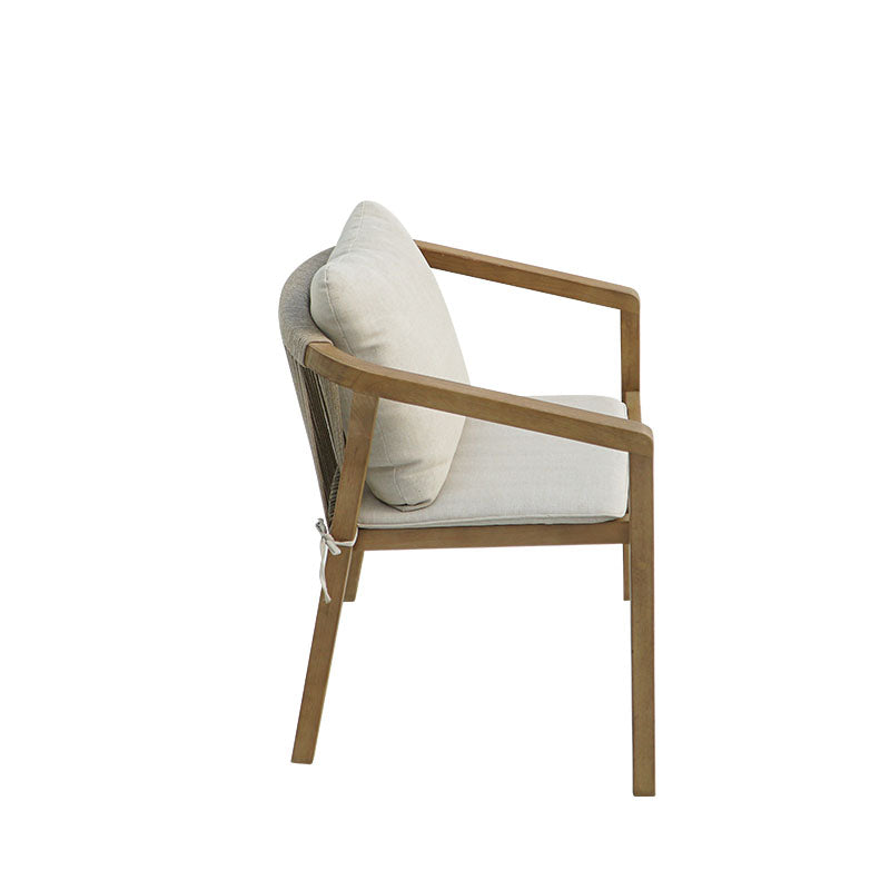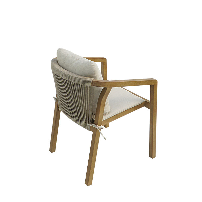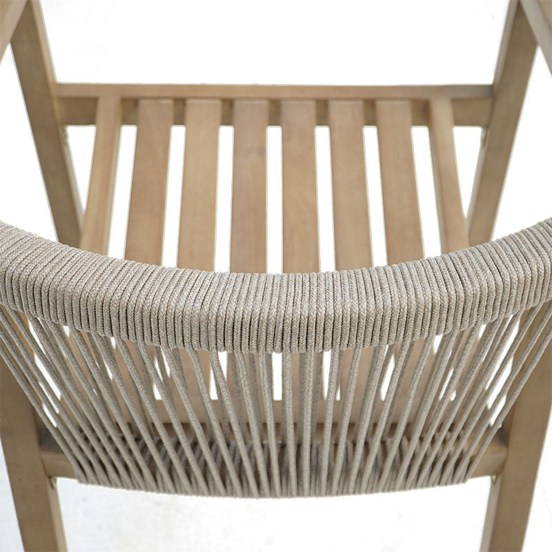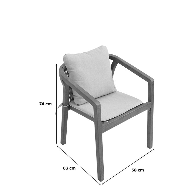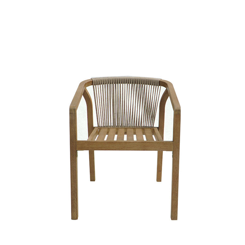 Изработена от издръжлива естествена акациева дървесина, тя се отличава с детайли от въжета отстрани и отзад, добавяйки стил в перфектна хармония с дървените повърхности. Акациевата дървесина се отличава с уникални цветови вариации и изисква правилна грижа, за да се предотврати потъмняване и да се удължи животът ѝ. Естествената ѝ здравина, съчетана с красотата ѝ, я прави идеална за градински мебели, тъй като е водоустойчива и подходяща за зони, често изложени на влага. Подходяща както за жилищна, така и за професионална употреба.