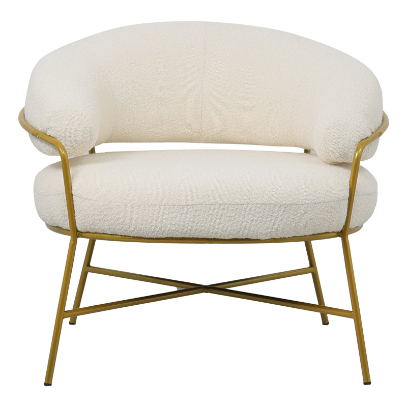 Фотьойл Malu bouclé кремаво-златист метален крак 84x79x76см