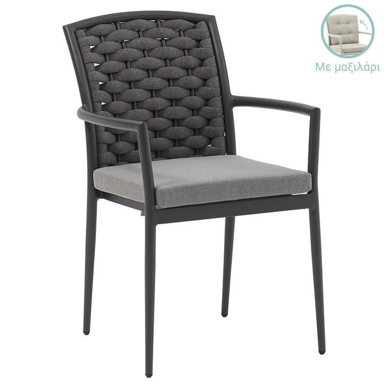 Градински фотьойл Moritz алуминий антрацит въже-възглавница сиво