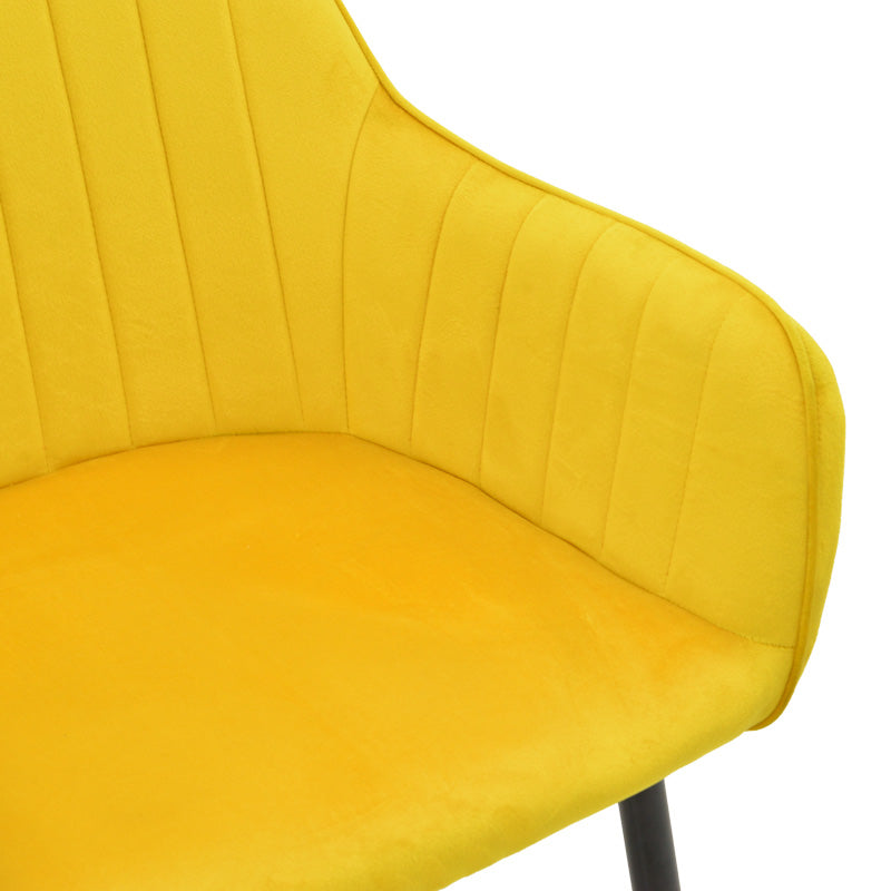 - Обединени облегалка и седалка, изработени от подсилена рамка и тапицирани с висококачествено, издръжливо кадифе, предлага се в жълт цвят.