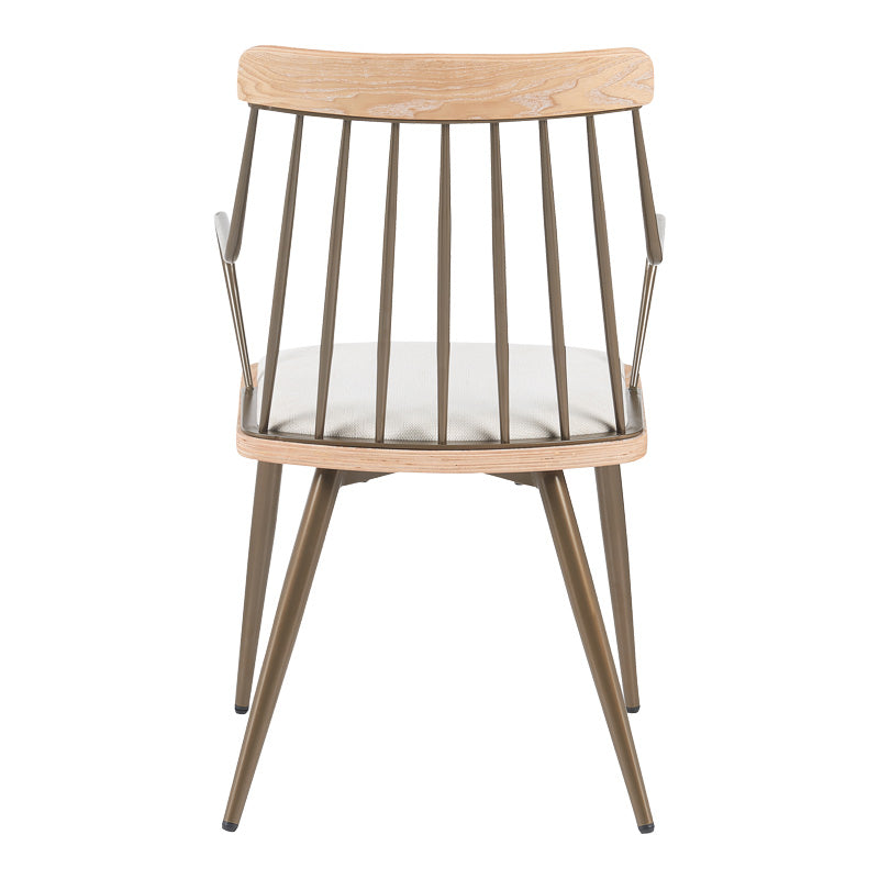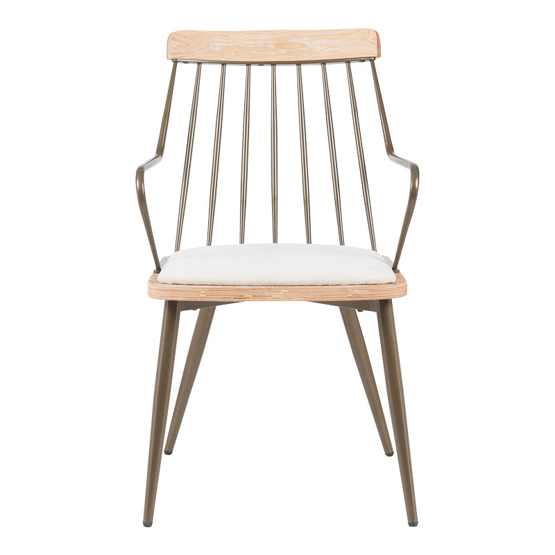 Трапезното кресло Posse се отличава със своя изискан индустриален дизайн. Разполага с удобна, тънка възглавница за седалка, обрамчена от елегантна метална конструкция. Облегалката е съставена от вертикални метални пръти, които завършват с хоризонтален дървен детайл, добавяйки фин контраст. Неговите тънки, заострени метални крака подобряват усещането за лекота и стабилност, докато извитите метални подлакътници предлагат допълнителен комфорт и стил. Posse е отличен избор за тези, които търсят предмет, който съчетава модерна естетика с функционалност, идеален за обновяване на всяка трапезария или жилищно пространство. Технически спецификации: Дървени акценти, изработени от избелен шперплат, предлагащи висока издръжливост и устойчивост на износване. Модерен извит дизайн за визуална привлекателност и комфорт. Поддържан от метални крака с бронзово покритие. Тапициран с висококачествен плат, устойчив на износване и триене. Предлага се в бежов цвят. Размери на продукта: Дължина: 52 см Ширина: 59 см Височина: 83 см Забележки: Продуктът се доставя във фабрична опаковка с подробно ръководство за монтаж. Цветовият тон на продукта може леко да се различава от фотографското представяне на вашия екран.