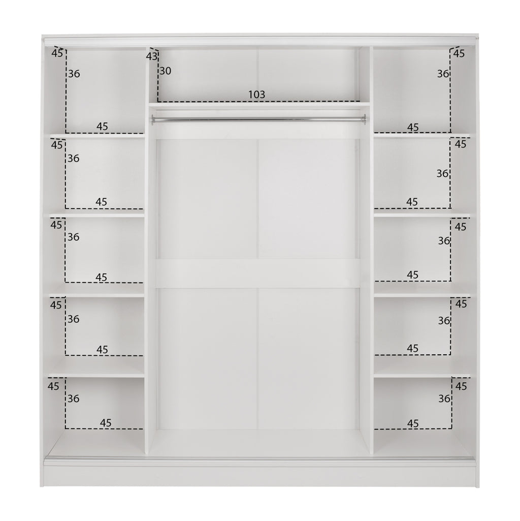 Гардеробът ADLER в бял цвят е перфектният избор за големи семейства и тези, които се нуждаят от максимално пространство за съхранение в светъл и елегантен дизайн.