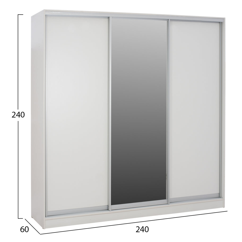 Гардероб ADLER Бял 240x60x240 см с 3-Делно Огледало