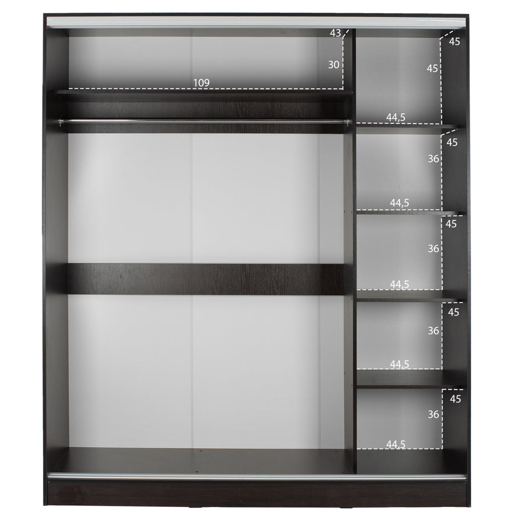 Гардеробът ADLER в цвят венге е перфектното решение за организиране на вашето облекло и аксесоари. С размери 160x60x210 см, той предлага достатъчно пространство за съхранение, като същевременно добавя елегантен акцент към всяка спалня.