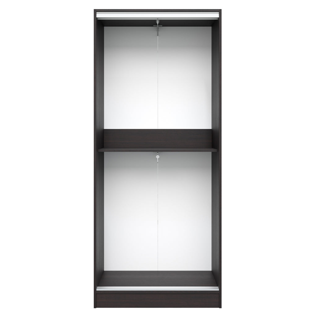 Двукрилният гардероб ADLER в елегантен цвят венге е идеалният избор за спални с ограничено пространство. С размери 90x45x210 см и плъзгащи се врати, той максимално оптимизира всеки сантиметър.