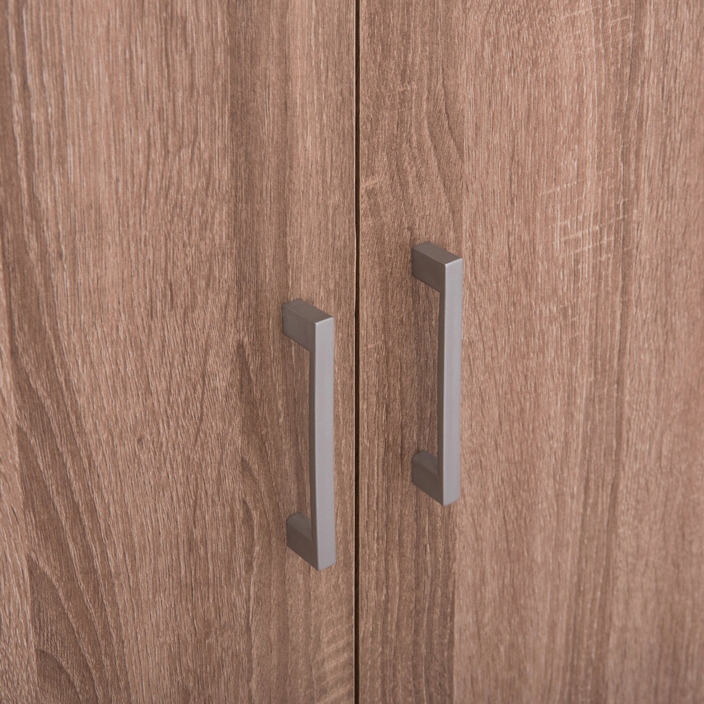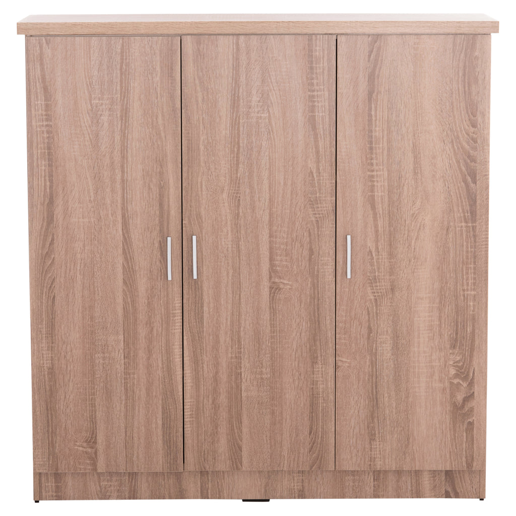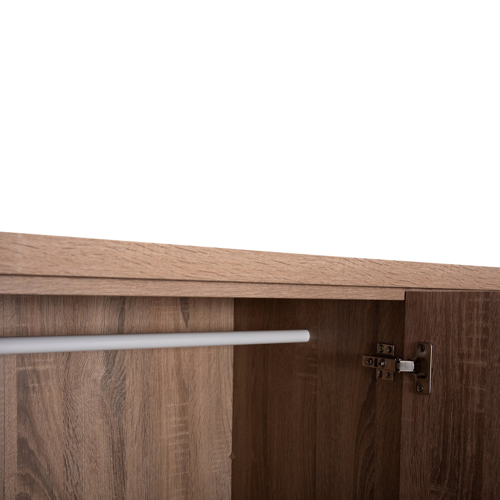 Трикрилният гардероб FUENTO е много практичен, сравнително къс (така че идеален и за детски стаи), гардероб, който е направен с оглед на възможно най-доброто използване на пространството. Има 3 врати, но с неочаквано удобни пространства вътре. Страната с двойната врата има рафтове и метална щанга за окачване. Страната с единичната врата има само рафтове. Изработен е от меламин в цвят ДЪБ СОНАМА и естетически може да пасне на много други стилове, благодарение на "изчистените" си линии. РАЗМЕРИ: 120-116x40x123.5H см. Отляво: 74.5x37x47H -- 37.5x37x37H 74.5x37x39H -- 37.5x37x34.5H 74.5x37x23H -- 37.5x37x37H МАТЕРИАЛИ НА ИЗРАБОТКА: Гардеробът е изработен от висококачествен меламин. Меламинът е вид дървесина под формата на ПДЧ, много издръжлива и с голяма твърдост. Така че това е синтетичен материал с много твърда повърхност, което го прави много устойчив на драскотини, абразия и петна. ПОДДРЪЖКА: Меламинът, който е строителният материал, е особено издръжлив и се почиства много лесно от петна благодарение на твърдата си повърхност. Можете да избършете всички повърхности с влажна кърпа, а ако има упорити петна, можете да използвате мек почистващ препарат. *** Цветопредаването на продукта може леко да се различава от неговото фотографско представяне на вашия екран. Забележки: Продуктът се доставя разглобен във фабрична опаковка, с подробна инструкция за сглобяване. Препоръчително е гардеробът да се сглобява от поне 2 човека